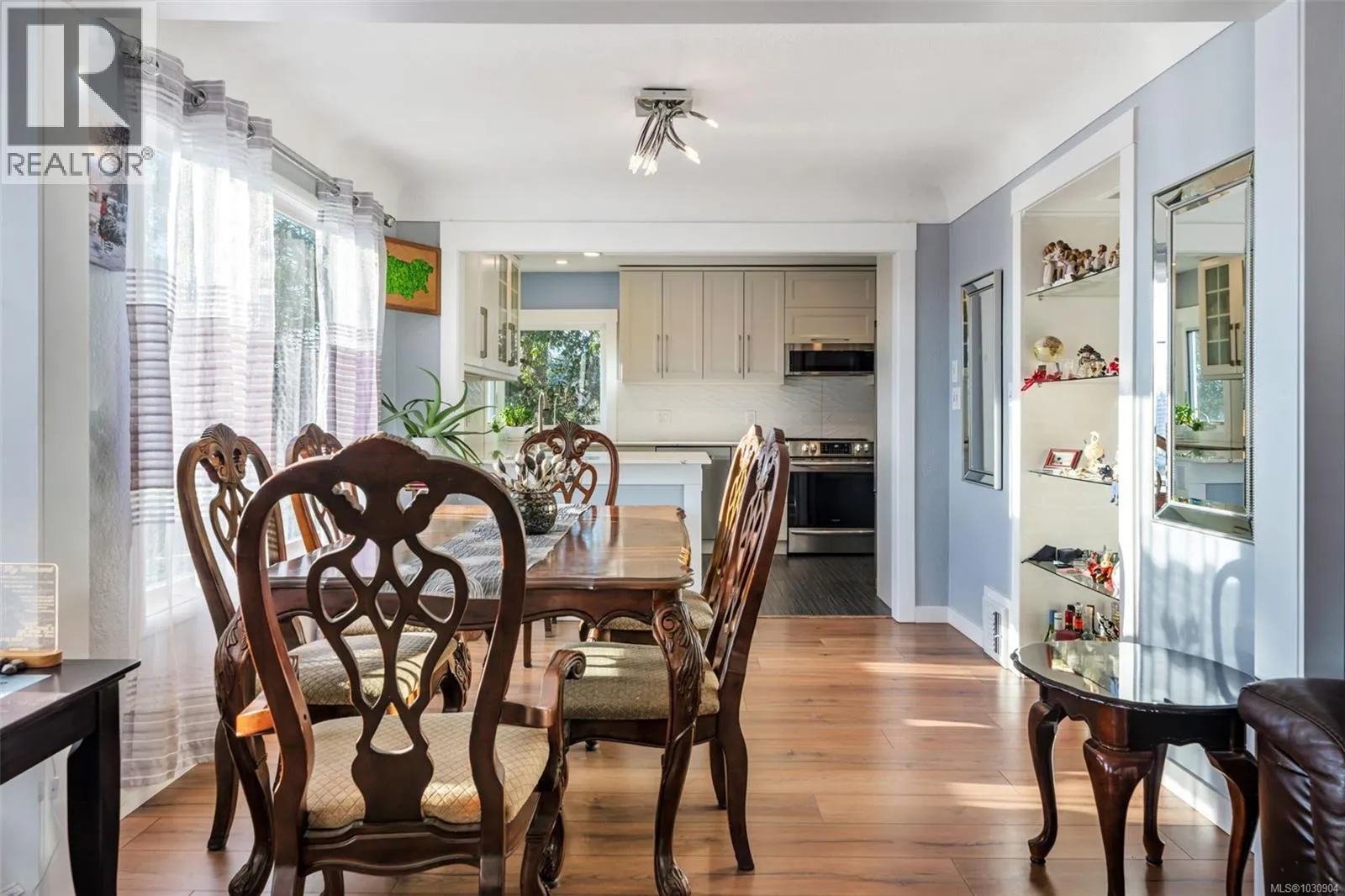 730 Burnside Road West is a charming character home with tasteful modern updates. This south-facing 5-bedroom, 3-bathroom residence features a renovated kitchen with quartz countertops, modern backsplash, soft-close cabinetry, and stainless steel appliances, with easy conversion to gas if desired. The bright living and dining area offers large windows, an electric fireplace, and a surprisingly quiet interior despite its central