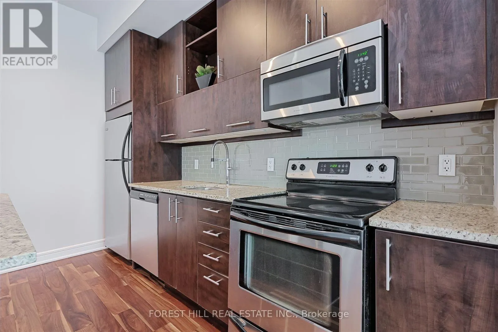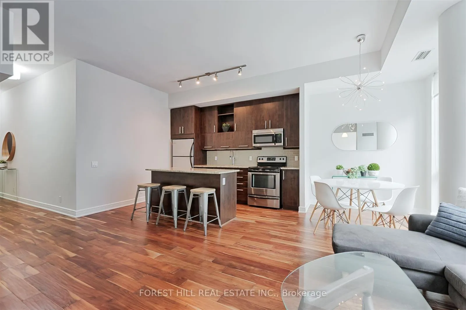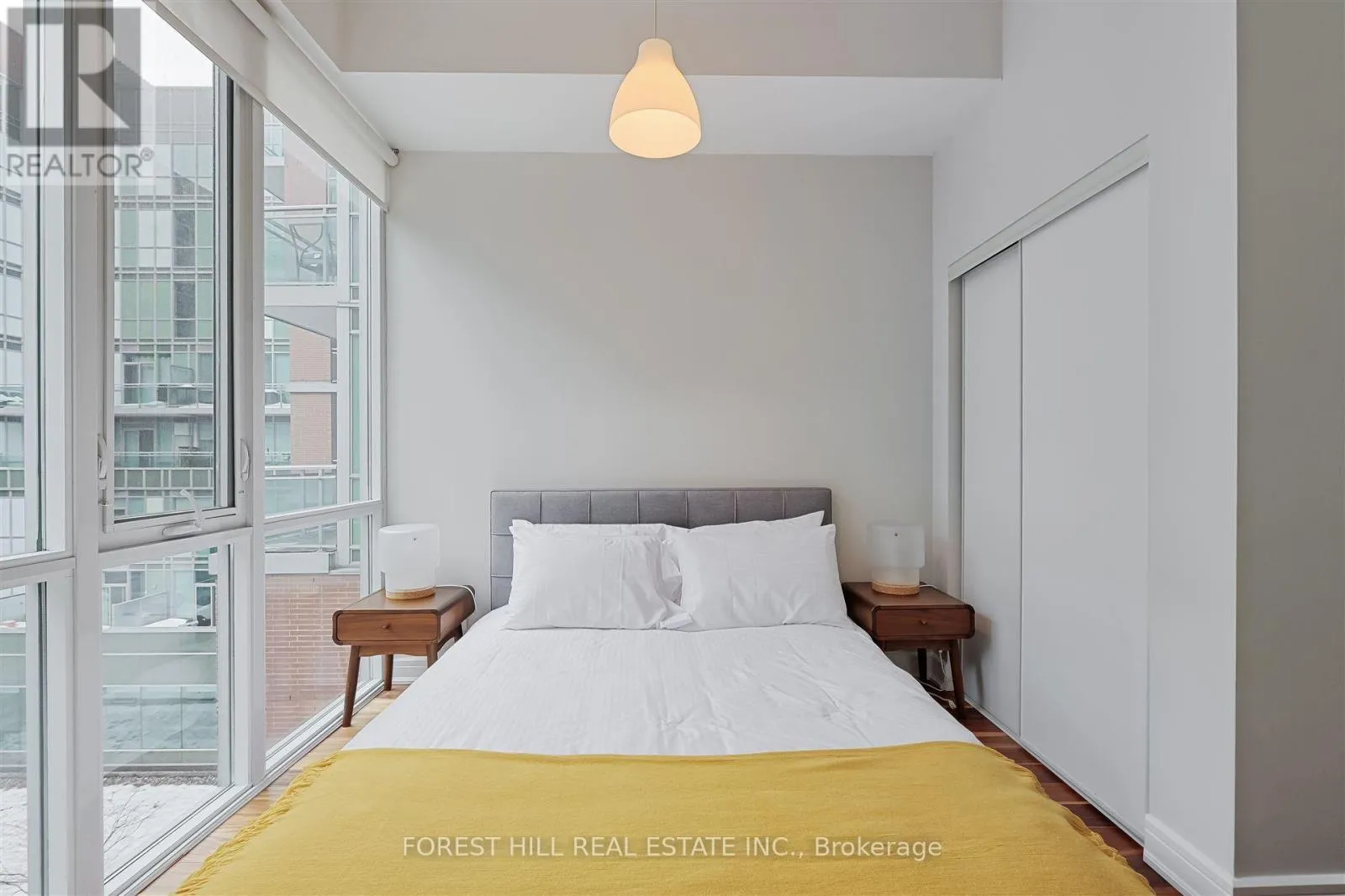 Beautiful 2-bedroom, 2-bathroom condo at The Vu South Tower! This spacious unit features an open-concept living and dining area with soaring ceilings, large windows, roller blinds, and a charming Juliette balcony that fills the space with natural light. The modern kitchen is equipped with an island and breakfast bar-perfect for both everyday living and entertaining. The primary and second bedrooms