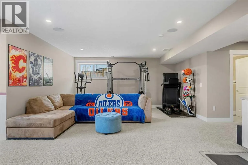 kitchen, dining, and living spaces. The spacious living room creates a warm and sophisticated setting for both relaxing and entertaining, while large windows fill the home with abundant natural light. The contemporary kitchen is beautifully appointed with extensive cabinetry, generous counter space, and a central island that enhances both meal preparation and hosting. The adjacent dining area provides ample room for family gatherings and intimate dinners. This level also includes a versatile den that functions perfectly as a home office or study, a stylish two-piece powder room, and a well-designed mudroom with direct access to the attached garage, ensuring daily routines remain organized and efficient. From the main living area, step onto the bi-level deck, an ideal setting for summer barbecues or quiet outdoor relaxation.Upstairs, the carefully designed upper level offers spacious bedrooms and comfortable living areas for the entire family. The primary suite serves as a peaceful retreat, easily accommodating a king-size bed and additional furnishings, and is complemented by a walk-in closet and an elegantly finished ensuite. The additional bedrooms provide flexibility for children, guests, or a dedicated workspace, while a full bathroom and convenient upper-level laundry enhance everyday functionality.The fully finished basement further expands the living space and provides exceptional versatility for modern family living. This level features a generous recreation area well suited for a media room, games area, or additional family lounge. Whether used for entertaining, relaxing, or creating a dedicated fitness or hobby space, the lower level adds valuable square footage while maintaining practical storage options.Located in the heart of Mahogany, one of Calgary’s most desirable lake communities, this home offers an exceptional lifestyle. Residents enjoy access to Mahogany Lake, a stunning 63-acre freshwater lake featuring private beaches and year-round recreation including swimming, paddleboarding, skating, and more. The surrounding community offers an extensive network of parks, pathways, and natural wetlands, creating beautiful settings for walking, jogging, or cycling. Mahogany also includes over 265 acres of open space, 22 kilometres of pathways, a private Beach Club, playgrounds, sports courts, and vibrant retail areas with shops, restaurants, and everyday conveniences. With schools, parks, shopping, and South Health Campus nearby, this property offers not just a home, but a refined four-season lake community lifestyle. (id:62650)