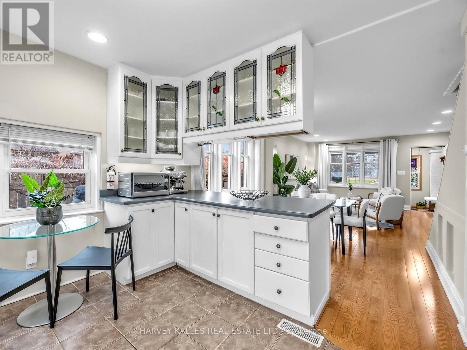 Bright, Detached Gem on Dentonia Park – Move-In Ready!Sunny open-concept main floor with new oak hardwood throughout, a spacious kitchen with breakfast bar, and a light-filled sunroom/office featuring a skylight and walk-out to a private south-facing garden deck – perfect for morning coffee and entertaining. Sliding glass doors open to back deck gazebo and stained-glass accents in living area.