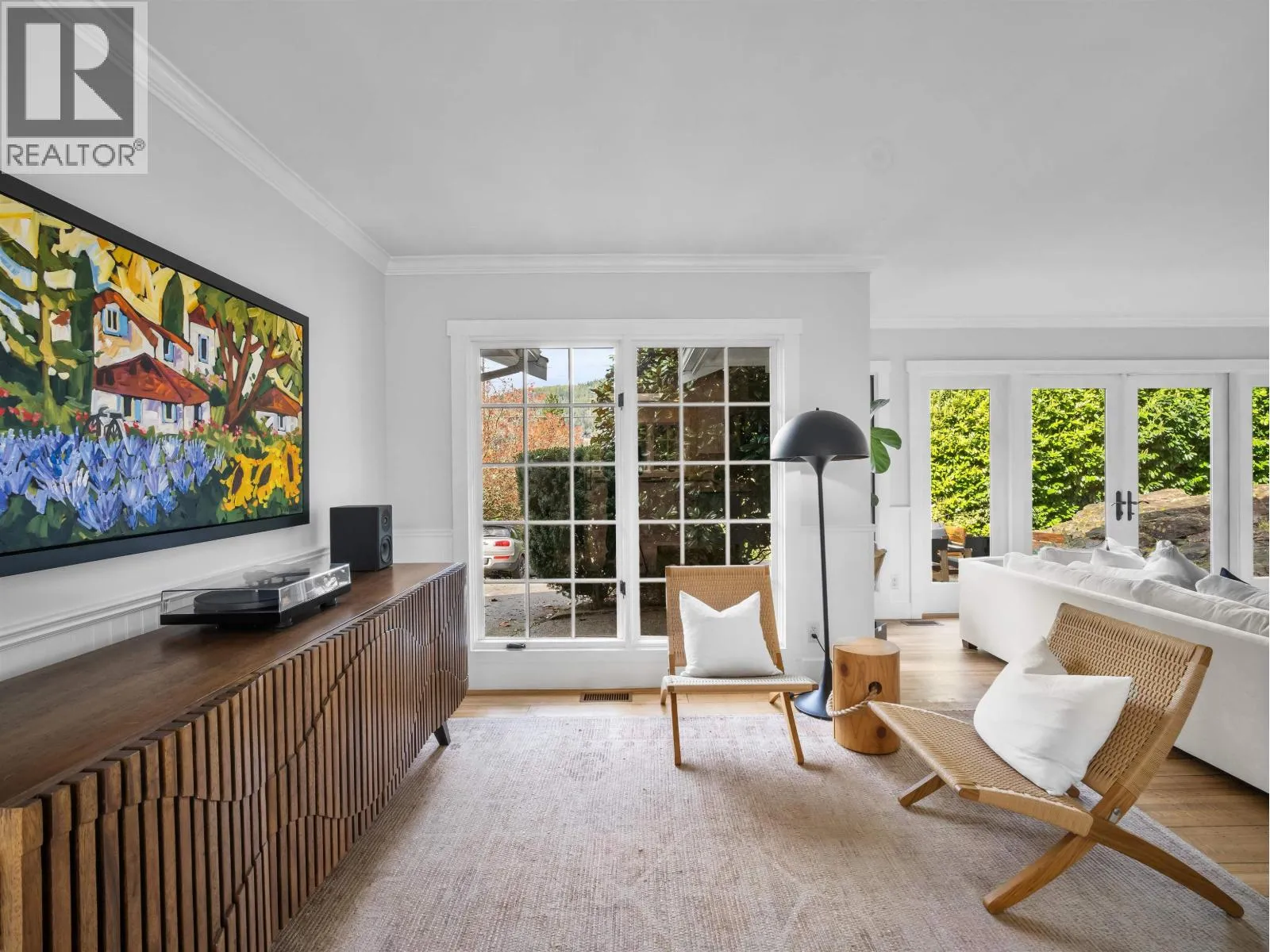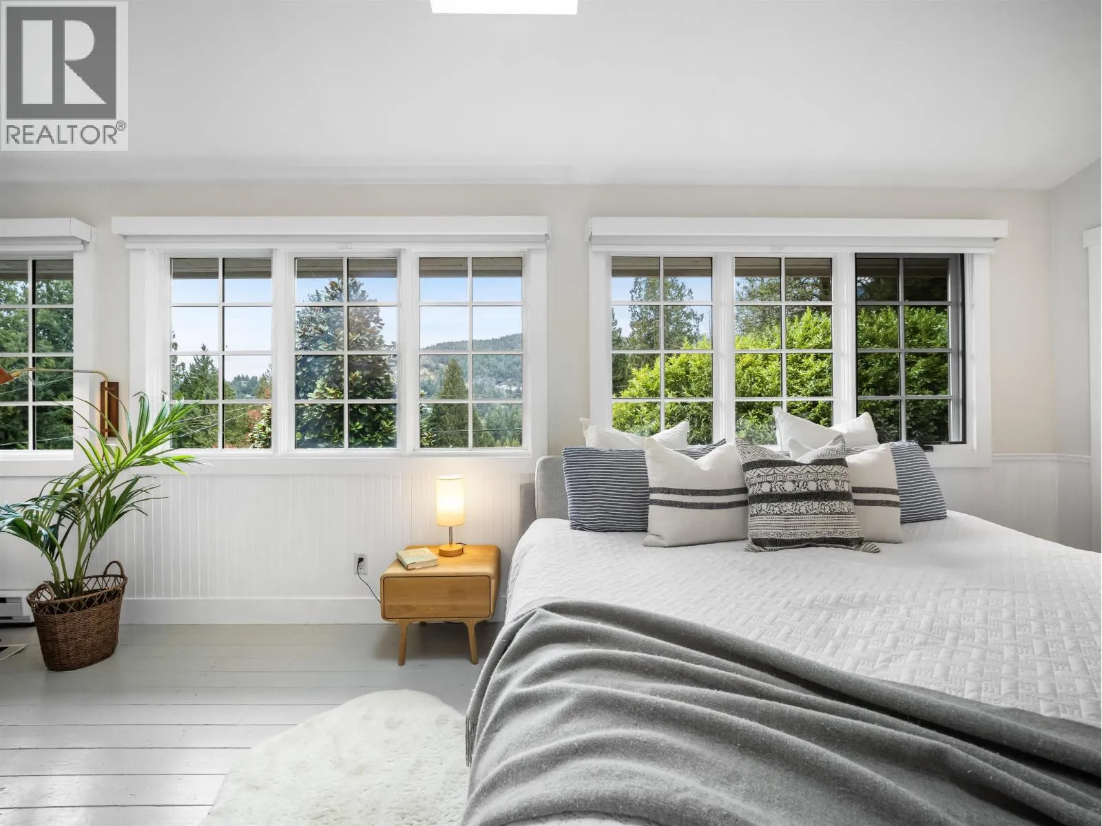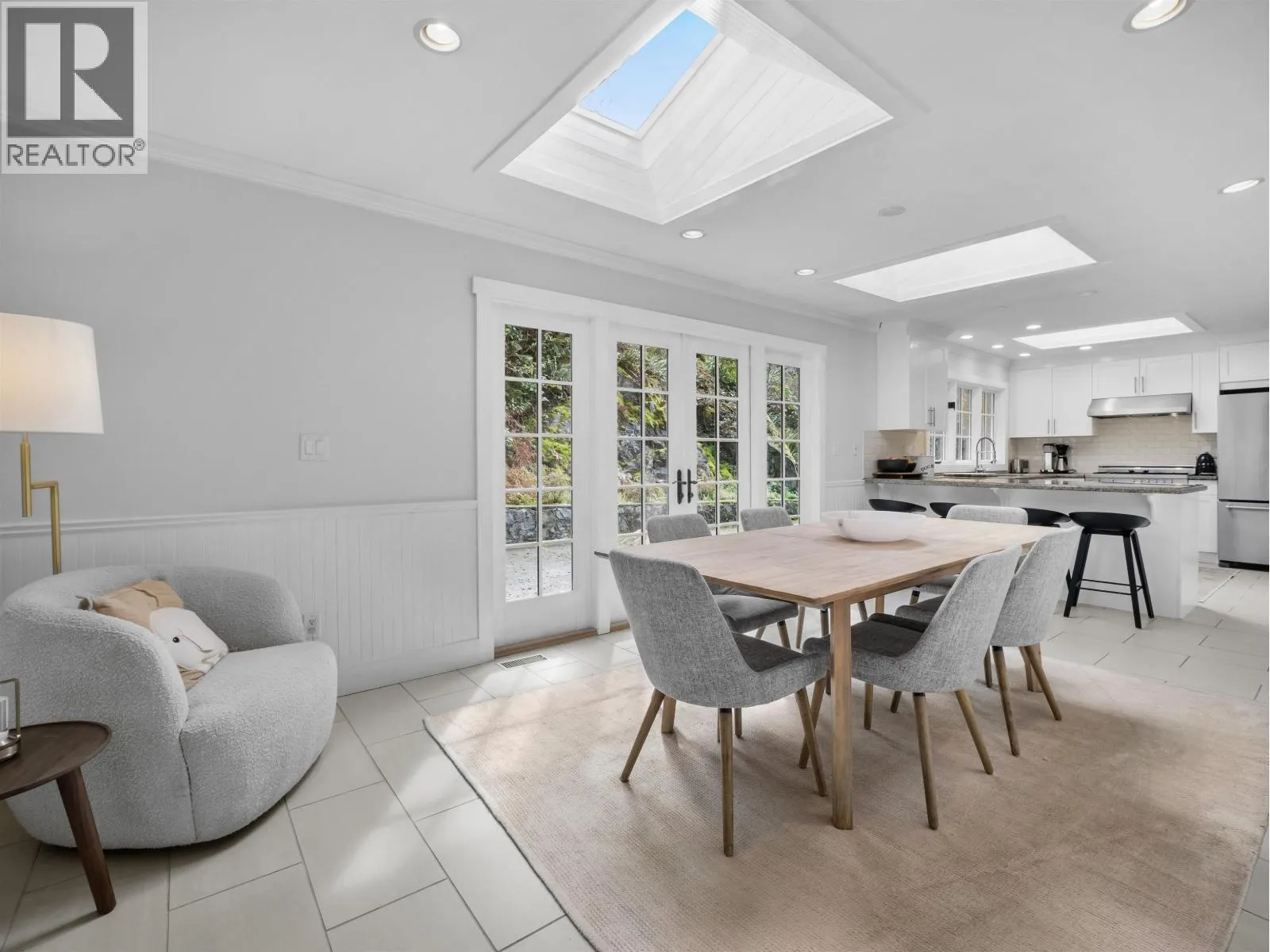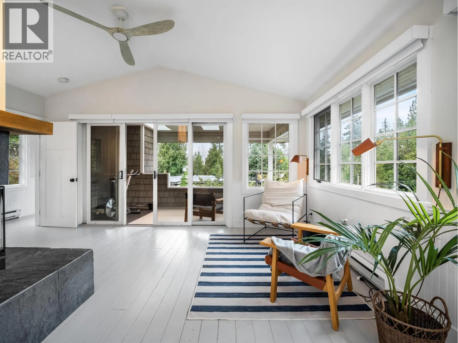 This 2,600 sqft Eagle Harbour home offers a refined take on modern living with a layout designed for comfort and functionality. The open-concept interior is brightened by large windows and skylights showcasing a kitchen equipped with high-end stainless appliances, custom cabinets, and a functional breakfast bar. A slate fireplace provides a solid focal point for the main living area. The