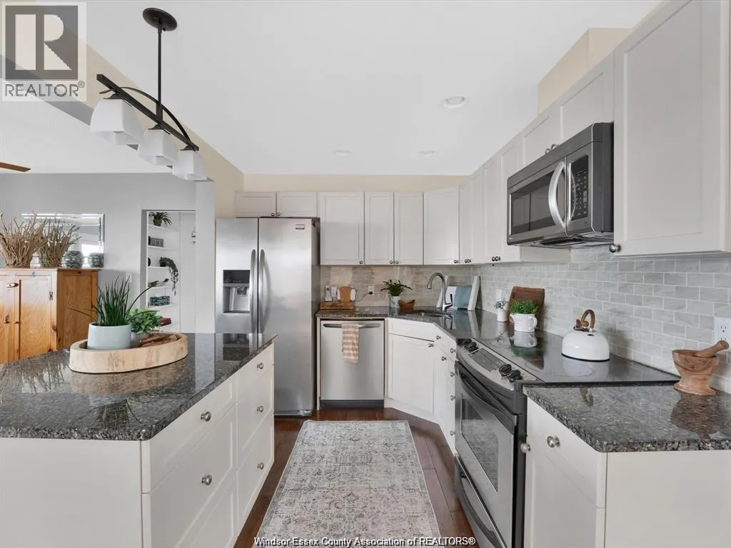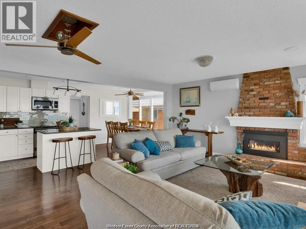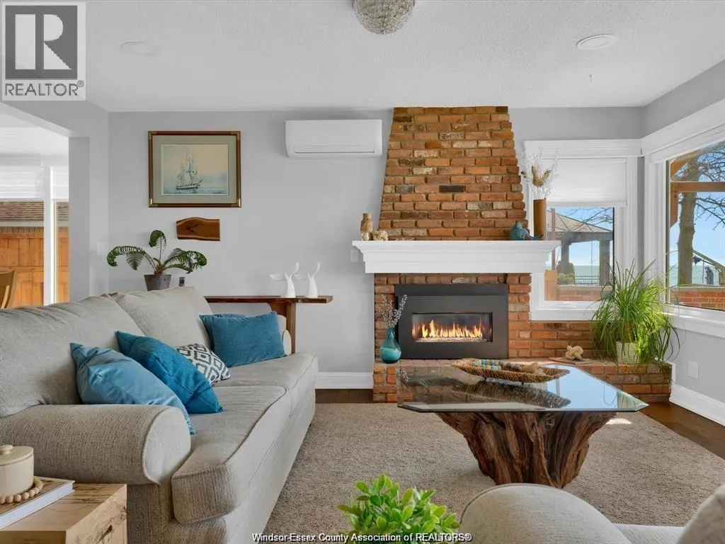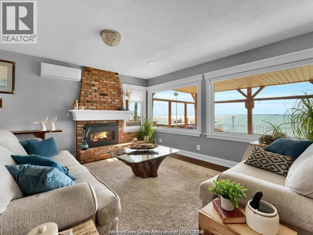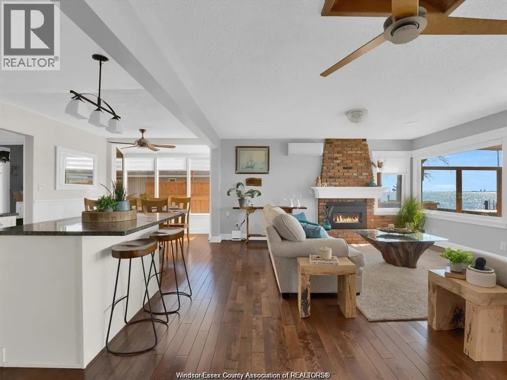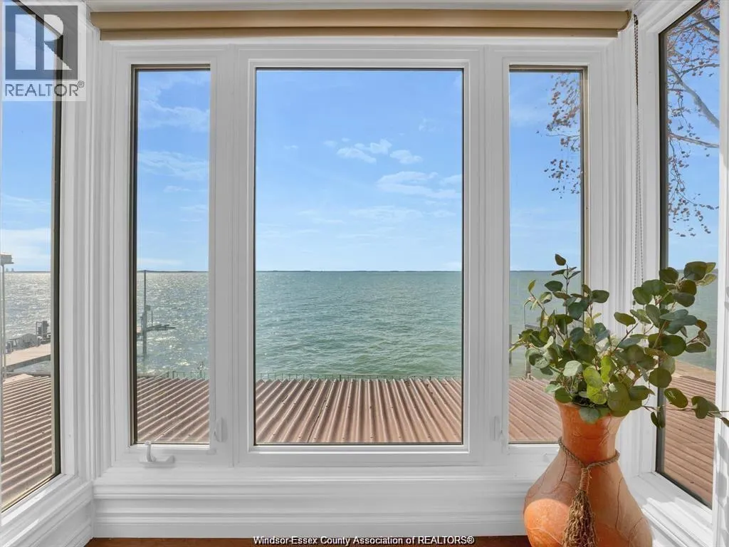 Welcome to 39 Woodbridge! A beautifully renovated waterfront home with unobstructed views where Lake Erie meets the start of the Detroit River. This bright, open concept main floor features a spacious kitchen with quartz countertops and a large centre island overlooking the dining area and living room with a gas fireplace. Patio doors lead to a covered porch with custom