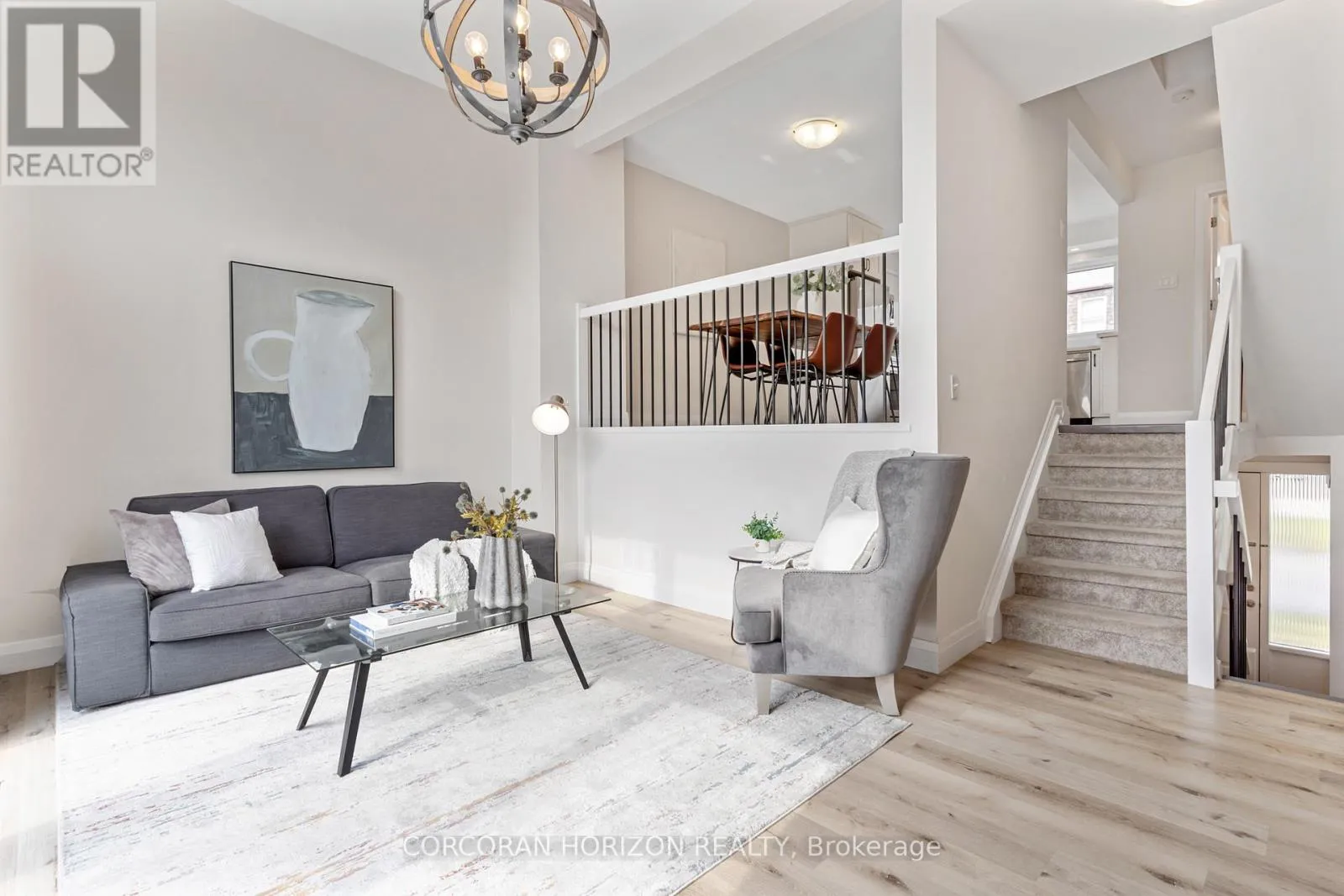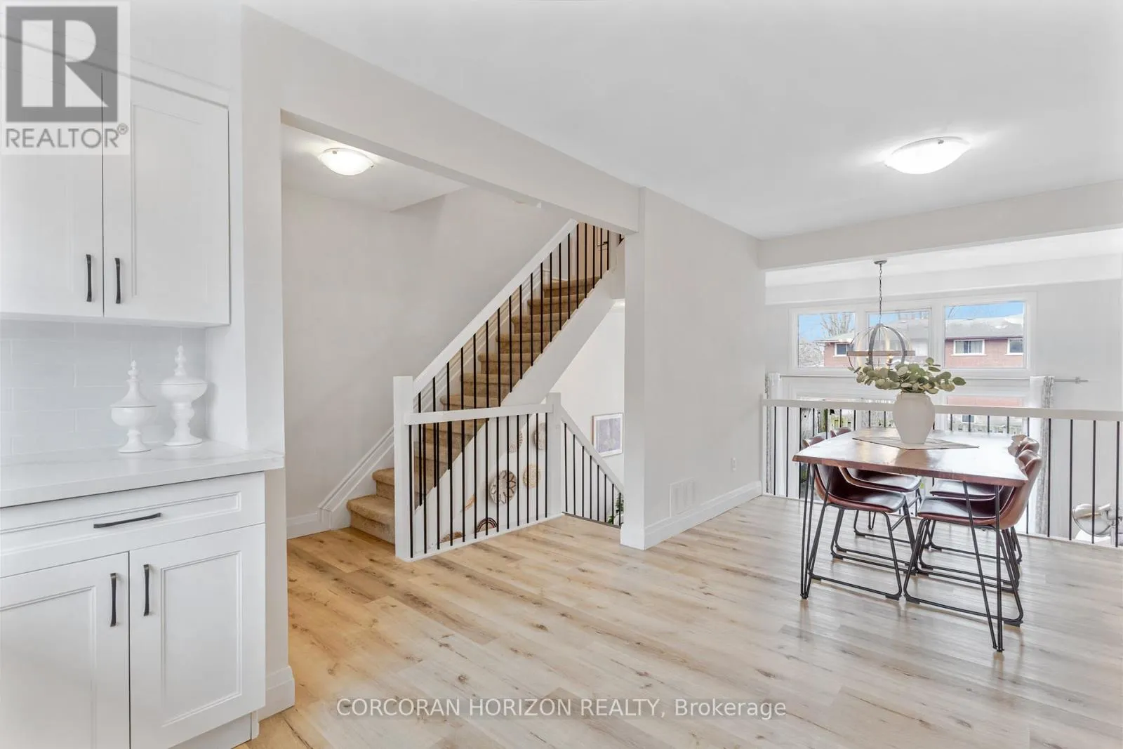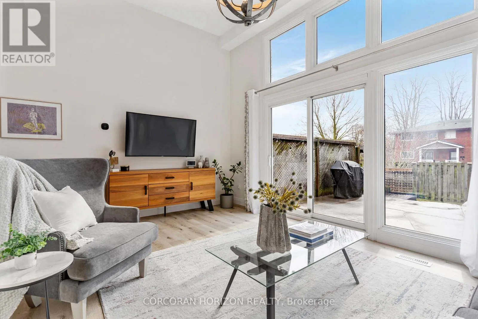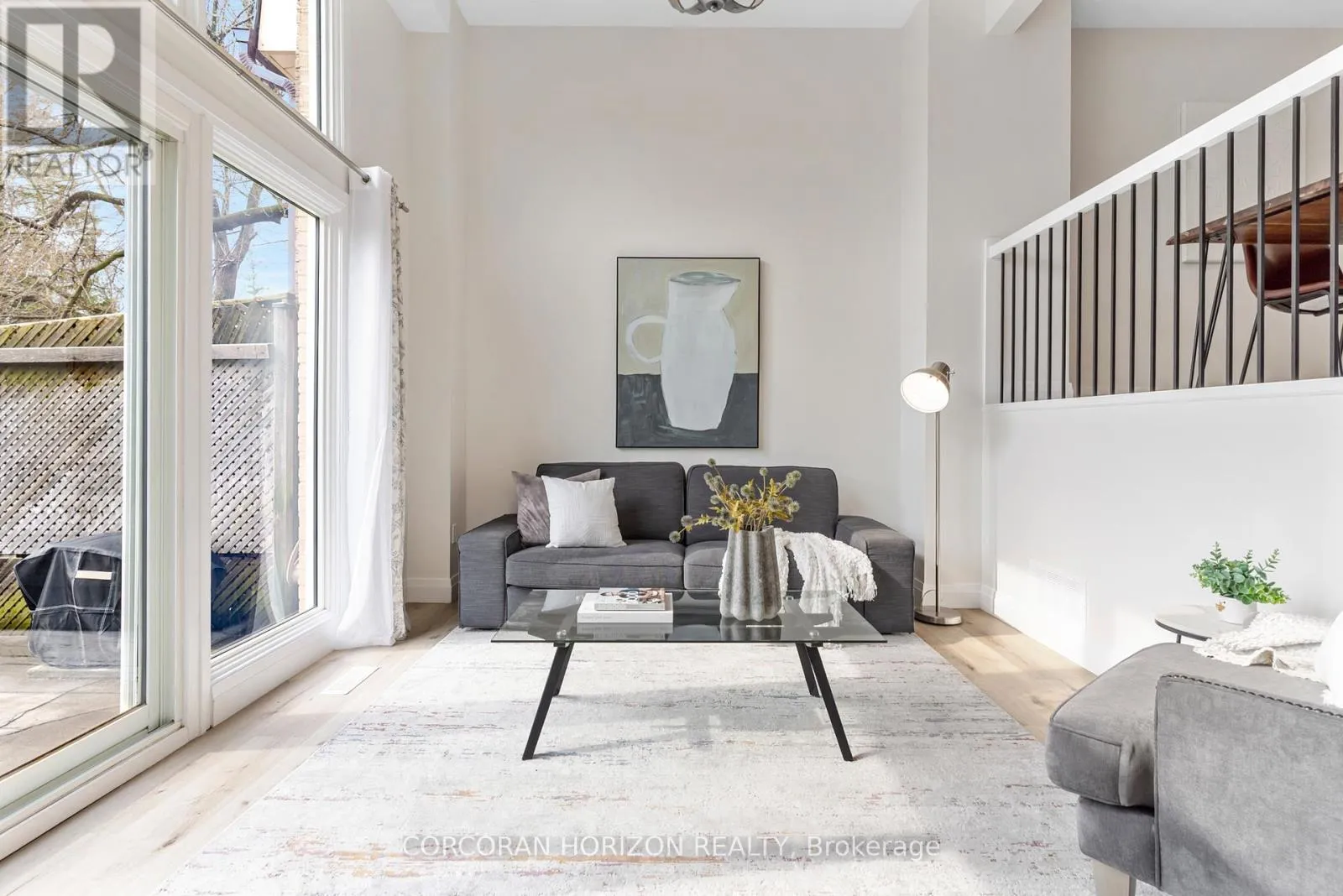 Welcome to 230 Blair Road, a beautifully updated townhome in the sought-after West Galt community offering a low-maintenance lifestyle.From the moment you enter, you’re greeted by a bright, open-concept layout with updated vinyl flooring throughout and elegant black wrought iron railings that create a cohesive, modern feel. The impressive 20-foot cathedral ceilings in the living room, combined with floor-to-ceiling windows