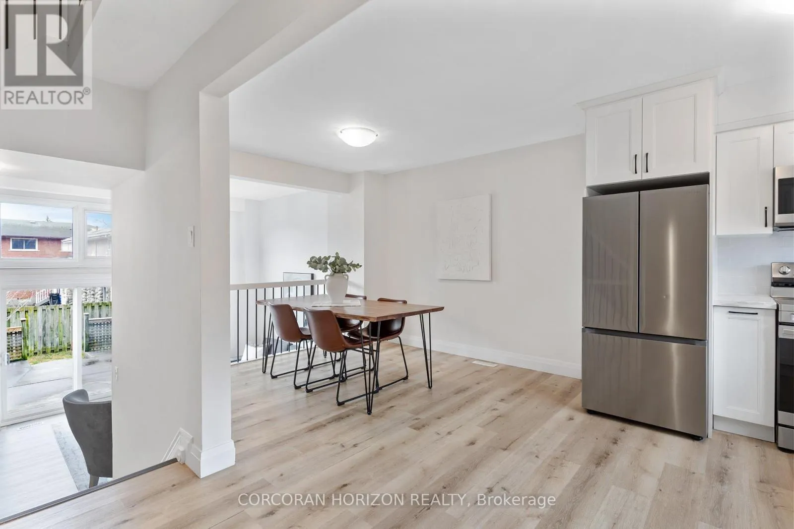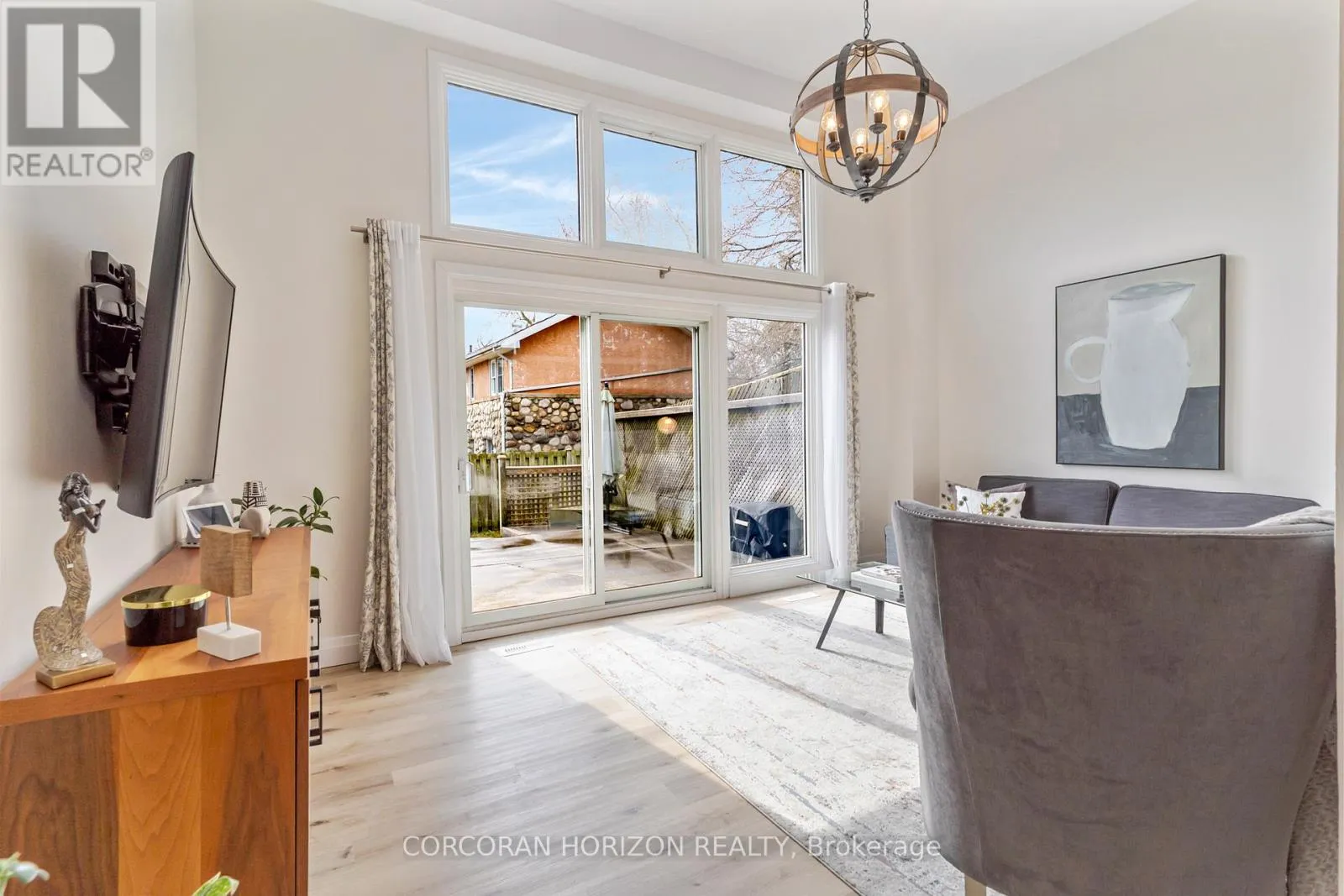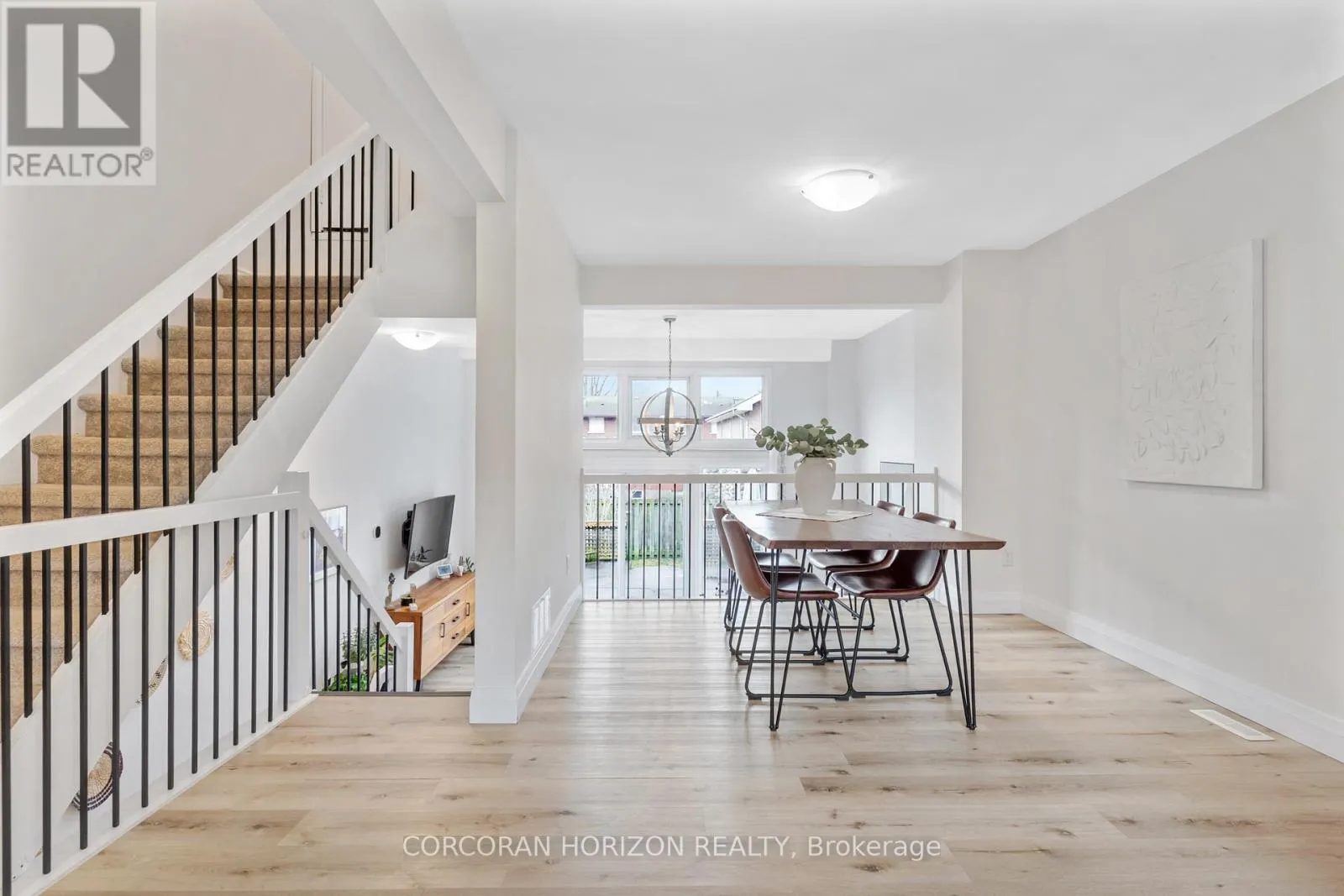 Welcome to 230 Blair Road, a beautifully updated townhome in the sought-after West Galt community offering a low-maintenance lifestyle.From the moment you enter, you’re greeted by a bright, open-concept layout with updated vinyl flooring throughout and elegant black wrought iron railings that create a cohesive, modern feel. The impressive 20-foot cathedral ceilings in the living room, combined with floor-to-ceiling windows