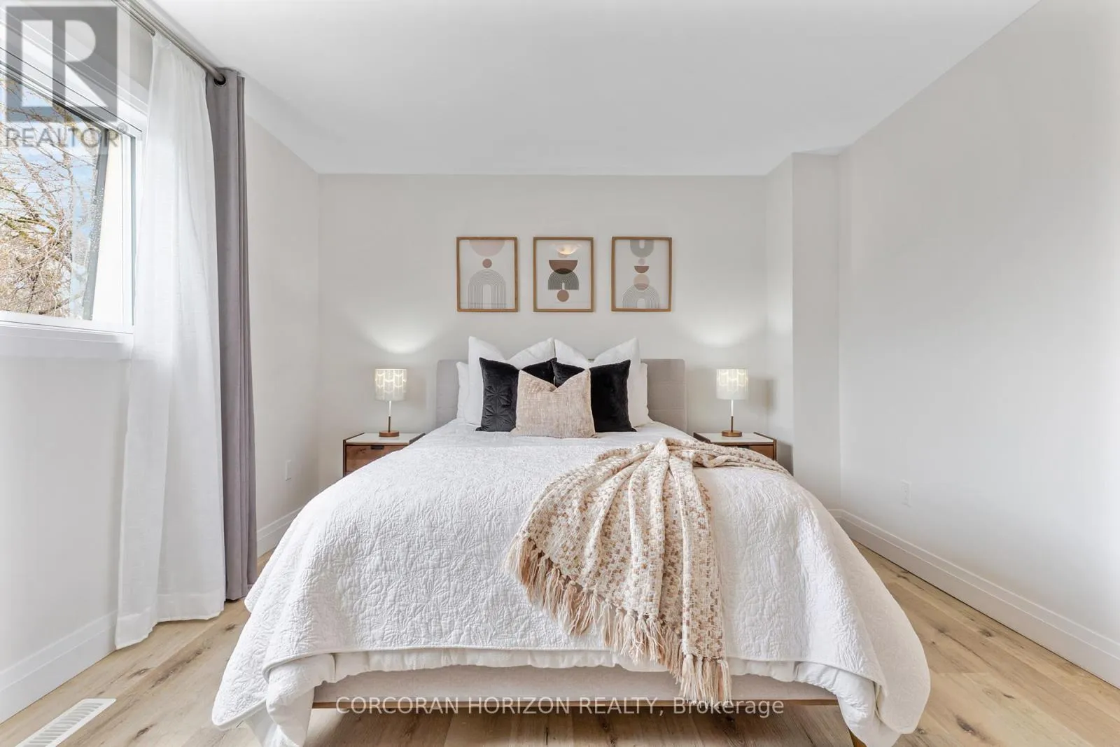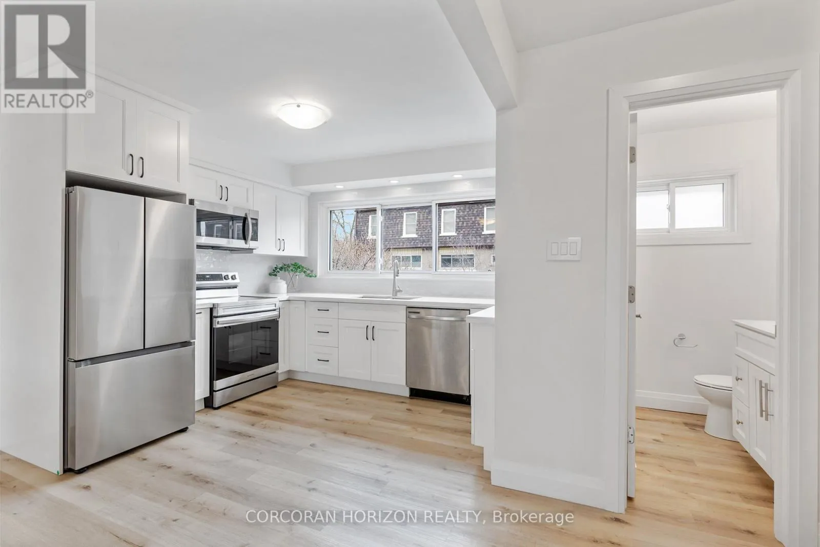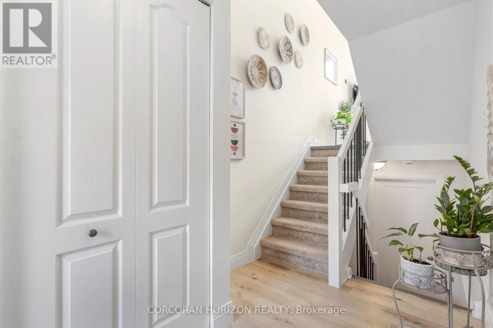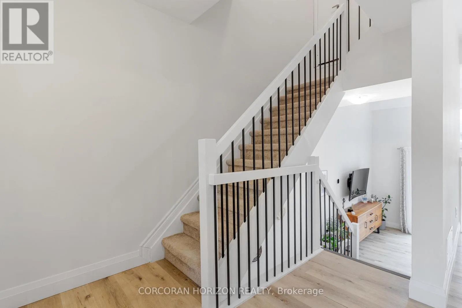 Welcome to 230 Blair Road, a beautifully updated townhome in the sought-after West Galt community offering a low-maintenance lifestyle.From the moment you enter, you’re greeted by a bright, open-concept layout with updated vinyl flooring throughout and elegant black wrought iron railings that create a cohesive, modern feel. The impressive 20-foot cathedral ceilings in the living room, combined with floor-to-ceiling windows