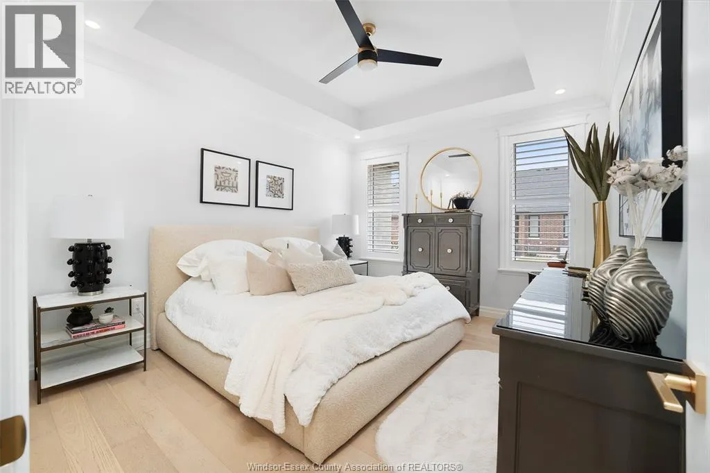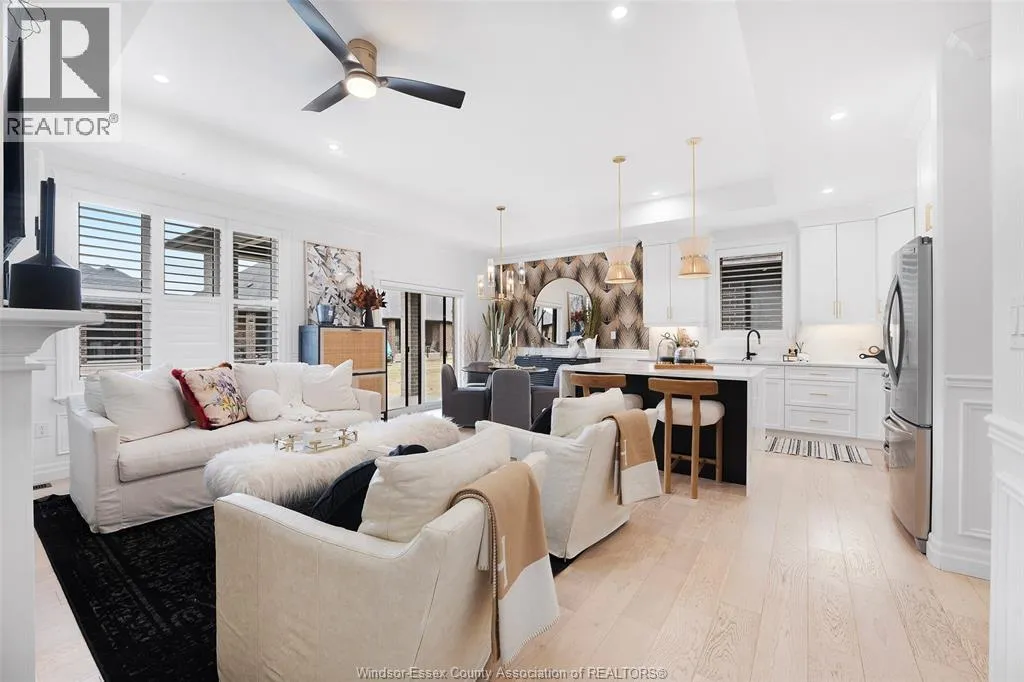 Not your typical townhome, this one is pure luxury! This 2-bedroom, 2-bathroom ranch-style townhome in sought-after Lakeshore was custom designed by Windsor’s iconic David Burman of Mister Style. The stylish kitchen showcases a stunning waterfall quartz island and flows seamlessly into the living and dining areas — perfect for entertaining or relaxed everyday living. Elegant wainscotting adds timeless character, while
