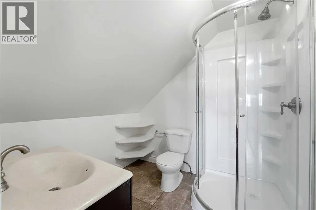 A one and a half storey house on a large lot. The entryway greets you to the living room that features maple hardwood flooring. The kitchen features two toned cabinets, a tiled counter, vaulted ceilings, tile floors, an island and pantry style cupboards. The 4 piece bathroom has a tiled tub/shower and laundry hookups. Follow the hardwood stairs up to