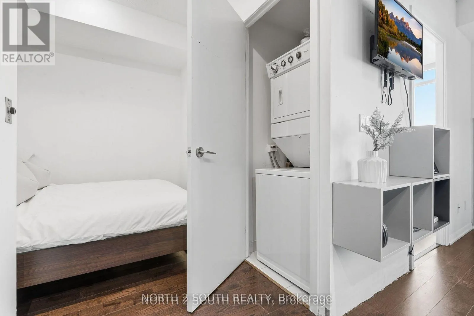 Spacious 1+Den Condo! Beautiful condo with a versatile den that can be a 2nd bedroom or office, overlooking a peaceful courtyard. Features open-concept living, stainless steel appliances, granite counters with island, 9ft ceilings, and ensuite laundry. Includes owned parking + locker. Includes the 2 mattresses, 2 bed frames and the TV as seen in the listing pictures. Steps to TTC,