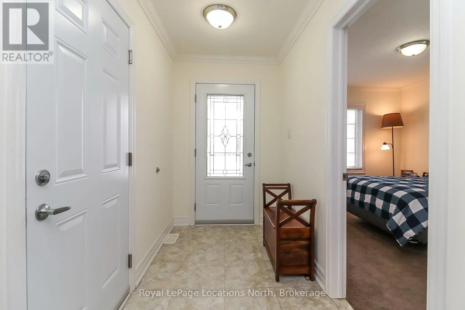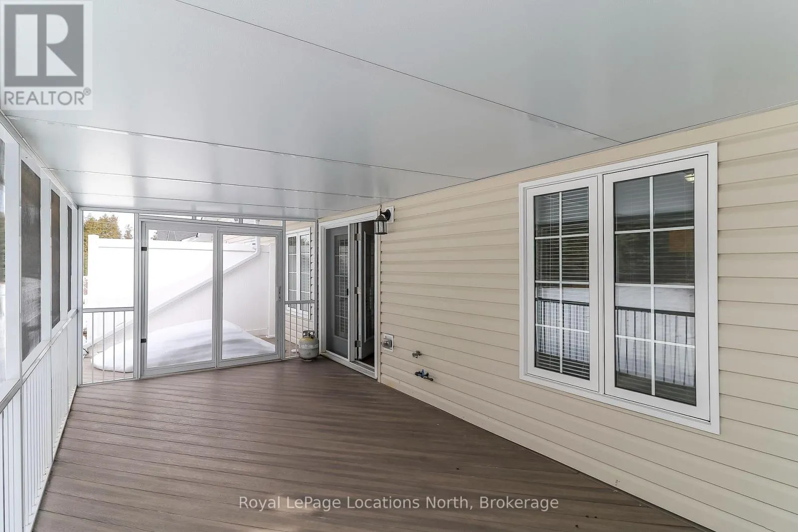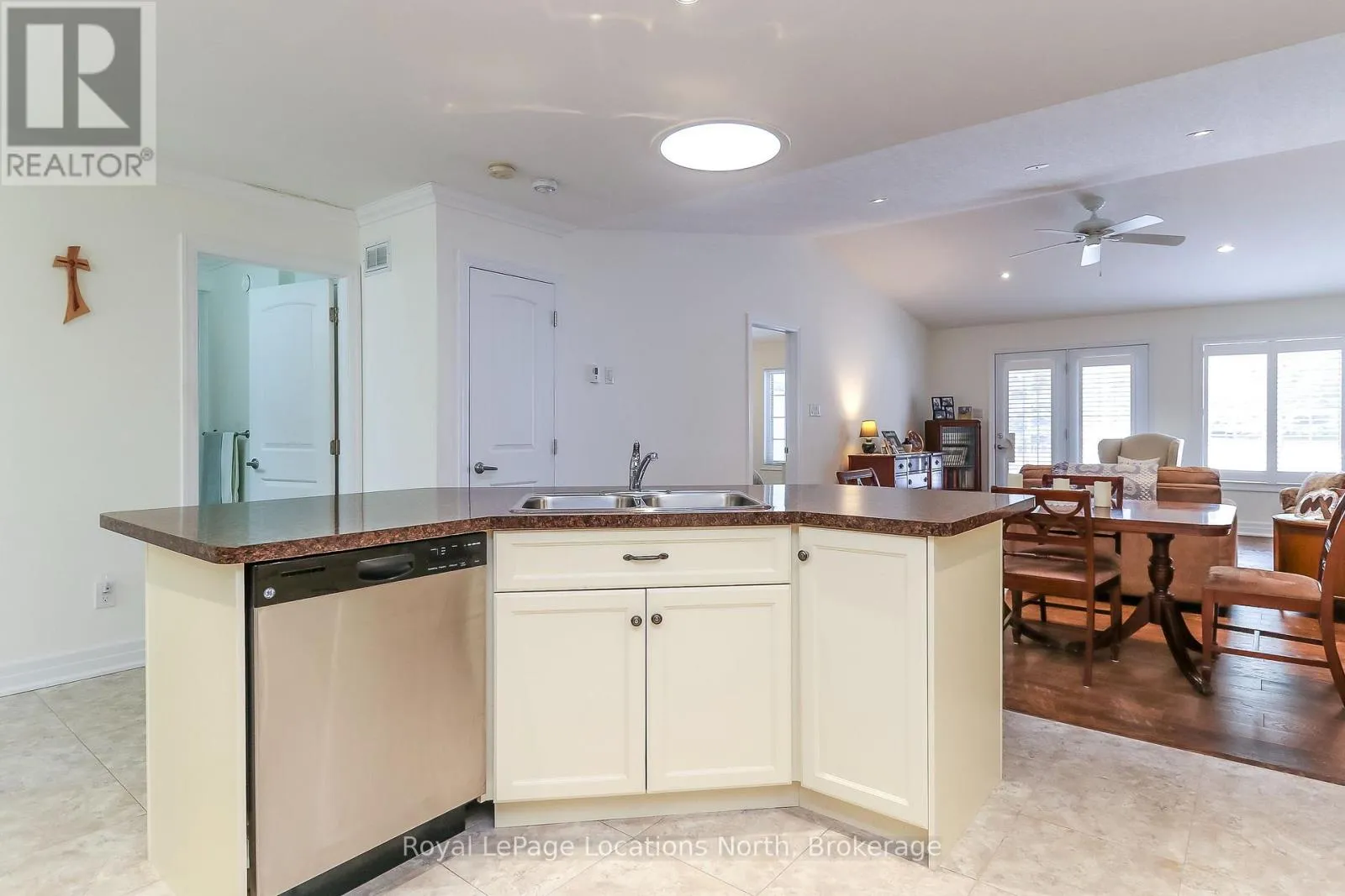 Spotlessly clean, wonderfully laid-out true bungalow (no steps at front door) located in a popular adult (age 55+) land lease community in a very quiet & tranquil area of Wasaga Beach. This 10-year-old, 1,248 sq. ft. semi-detached end-unit home has 2 bedrooms/2 bathrooms & shows like new. Features include open-concept principal living areas (kitchen, dining area & living room); vaulted