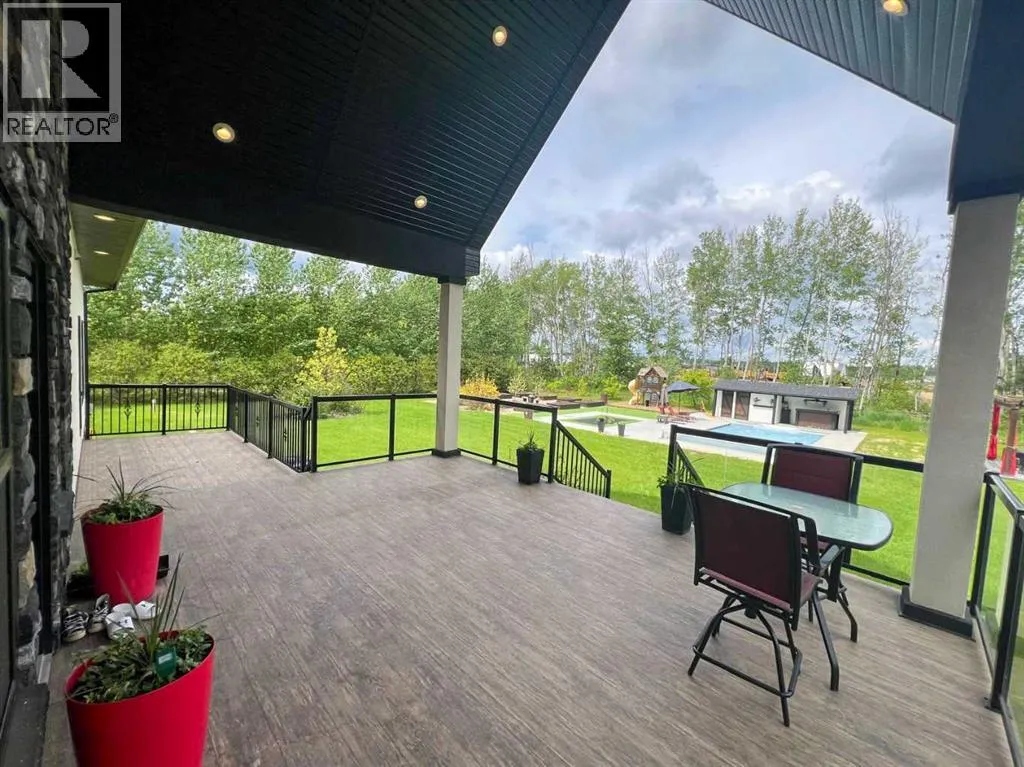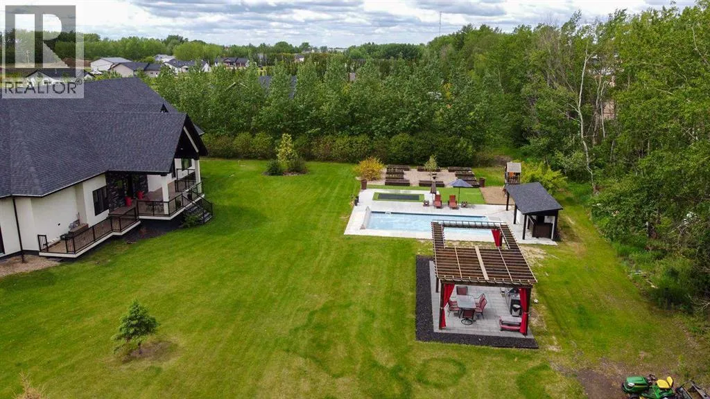 end finishes and an executive feel. The spacious foyer gives way to the astounding main area which has floor to ceiling windows, an expansive dining space, and a kitchen that is sure to impress. Custom cabinetry and walk in pantry offers plenty of storage, and the high end appliances include great features like a double wall oven, huge gas cooktop, upright freezer and more to make cooking a breeze. Enjoy the phenomenal hosting space with friends and family, and when dinners over, relax in the comfort of the private living room featuring plenty of natural light, and a timeless custom rock fireplace. The sprawling master suite is all you would expect with a full walk in closet, ensuite, and accent lighting, not to mention a door leading out to the impressive back deck featuring a huge covered patio area, and a great view of the backyard. The upstairs of the home features a story book inspired kids bedroom with its own full bath, 2 walk in closets, reading nook overlooking the southern skyline, its own balcony, and to top it all off a loft that adds another great play area. The bonus room up above the garage is a family oasis featuring a huge family/media room, pool table area, along with the laundry area, full bath, and an executive office space. Moving down to the fully finished basement you’ll discover a fully functional gathering place with its own full kitchen, bath, and expansive open area to enjoy. Off on the far end are 2 massive bedrooms with unique features including a gas fireplace with beautiful rock chimney, double walk in closets and a built in bunk bed. The home also offer a pristine oversized 3 car garage with plenty of space to park the vehicles and toys. The outside living space has some fantastic features for the family including a heated in ground swimming pool and trampoline for the kids, and a brick patio with pergola, the perfect spot to enjoy our great Alberta summers days. Enjoy the raised bed garden, in the nicely landscaped yard with mature trees all around. Come take a look at this turn key desirable property, luxury living awaits! Property is currently vacant and is being sold by way of judicial sale. Photos shown are from a prior listing. Schedule A must accompany all offers. Property sold as-is, where-is. Court approval required on all offers. (id:64429)
