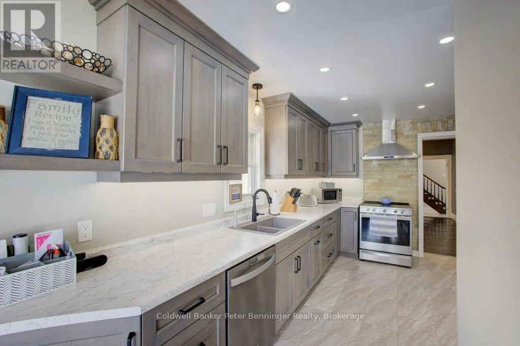Stately and solid ~ this yellow brick Victorian style home awaits its new family on a double sized corner lot in the Village of Paisley, close to the School and Health Centre. Home has been extensively renovated over the past several years including the new Kitchen and appliances (2024), Laundry Room (2022), Forced Air Natural Gas and Air Conditioner,