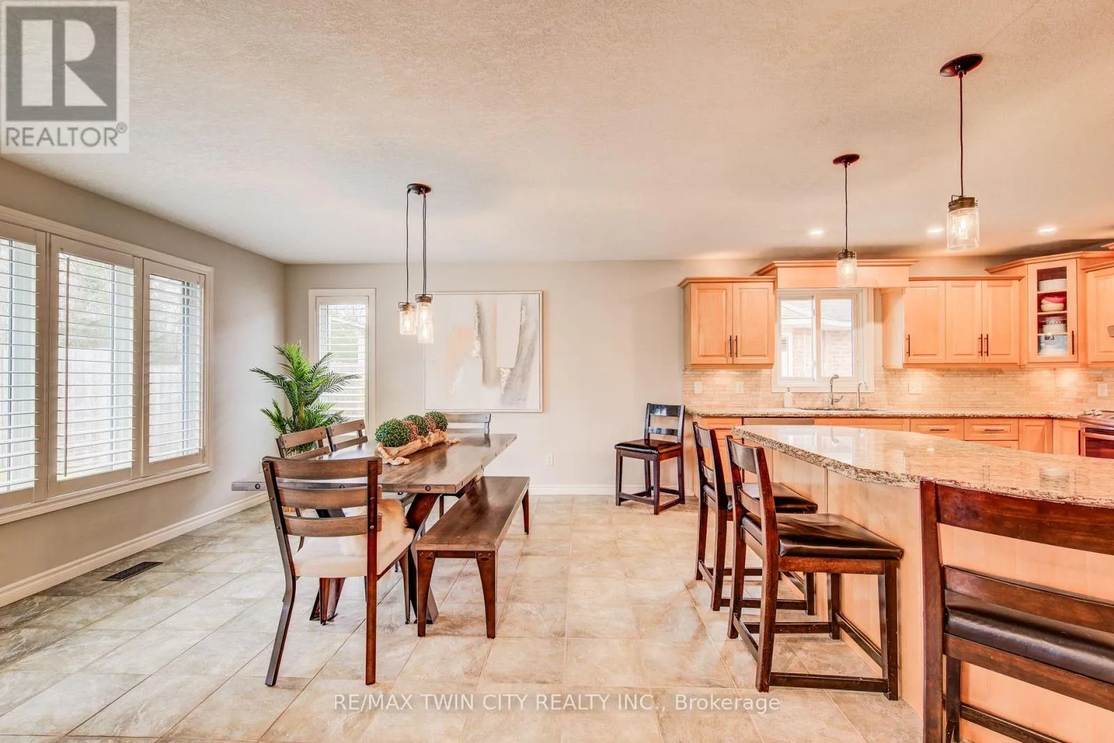 THIS LARGE AIRY BRICK BUNGALOW IS WELL SITUATED ON A PIE LOT ON ONE OF THE NICEST STREETS IN THE BEAUTIFUL TOWN OF NEW HAMBURG! THE LARGE INVITING FOYER OPENS ONTO THE GREAT ROOM WITH VAULTED CEILINGS AND A GAS FIREPLACE. THE CUSTOM CERWOOD KITCHEN HAS PLENTY OF STORAGE SPACE, GAS RANGE, NEW FRIDGE AND A GRANITE PENINSULA FOR THE