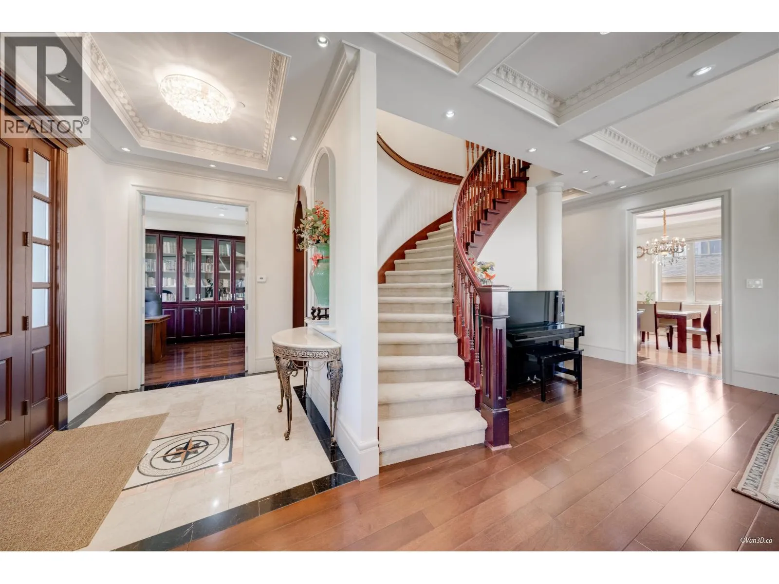 An exquisite custom-built mansion in the heart of prestigious South Cambie. Nestled on a quiet street, this 4,491 sqft home is a showcase of refined design & modern comfort. Offering crown mouldings and coffered ceilings, grand spiral staircase, new wood flooring &custom cabinetry, every element reflects superior craftsmanship. The chef´s kitchen is loaded with stainless steel appliances, granite countertops, radiant