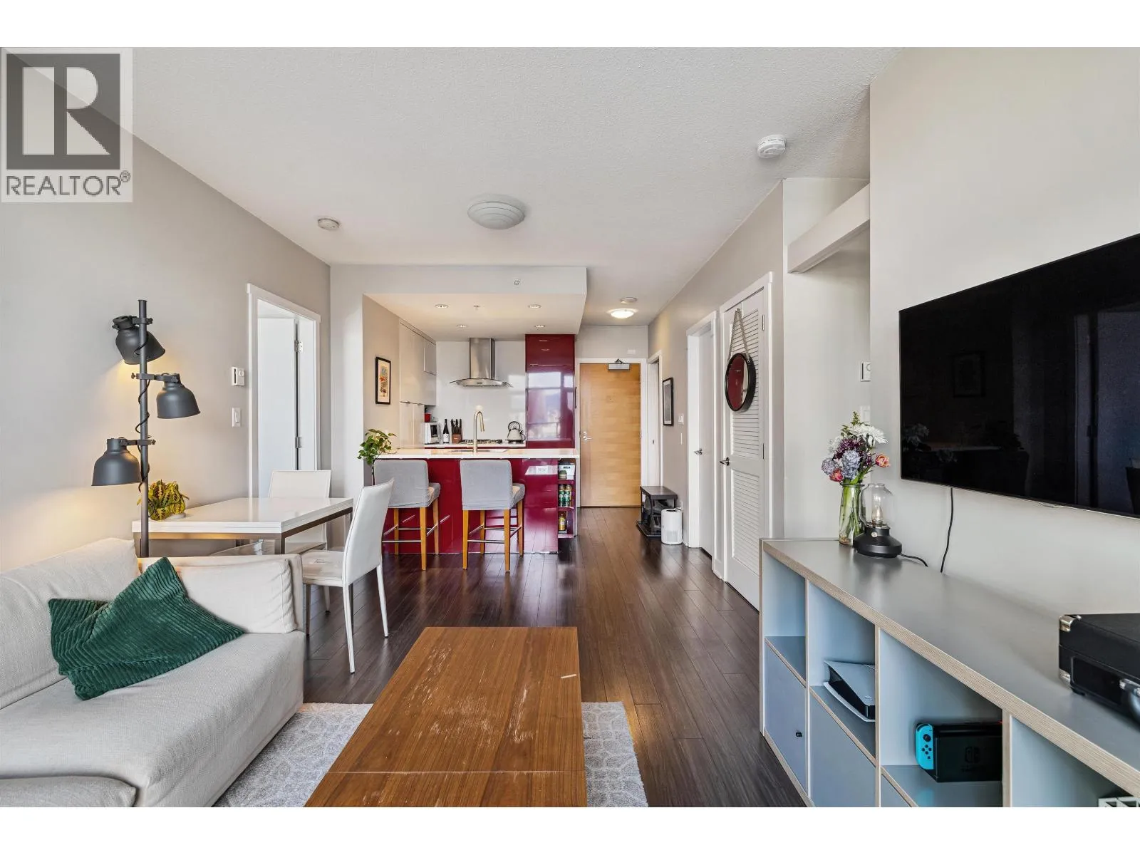 Highly sought after 2 bedroom plus den home at Kits360, ideally situated in the Kitsilano/Fairview neighbourhood. This 762 sqft residence offers an efficient layout with separated bedrooms, providing flexibility and privacy. The kitchen features modern cabinetry, quartz countertops, and stainless steel appliances. The standout feature is its north-facing exposure with expansive views of Downtown, the North Shore Mountains, and the