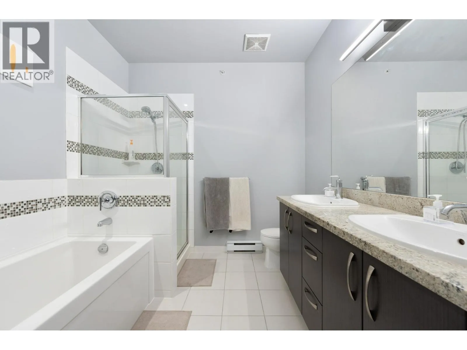 Well priced, Top-floor 2-bedroom, 2-bath condo with 2 parking stalls, soaring 10.5 ft ceilings, and a bright, spacious layout with bedrooms on opposite sides for added privacy. Features include a primary suite with walk-in closet and 5-piece ensuite, modern LED lighting with fan/light combos, roller shades, and blackout blinds. Conveniently located steps to Walmart, banks, restaurants, and just minutes to