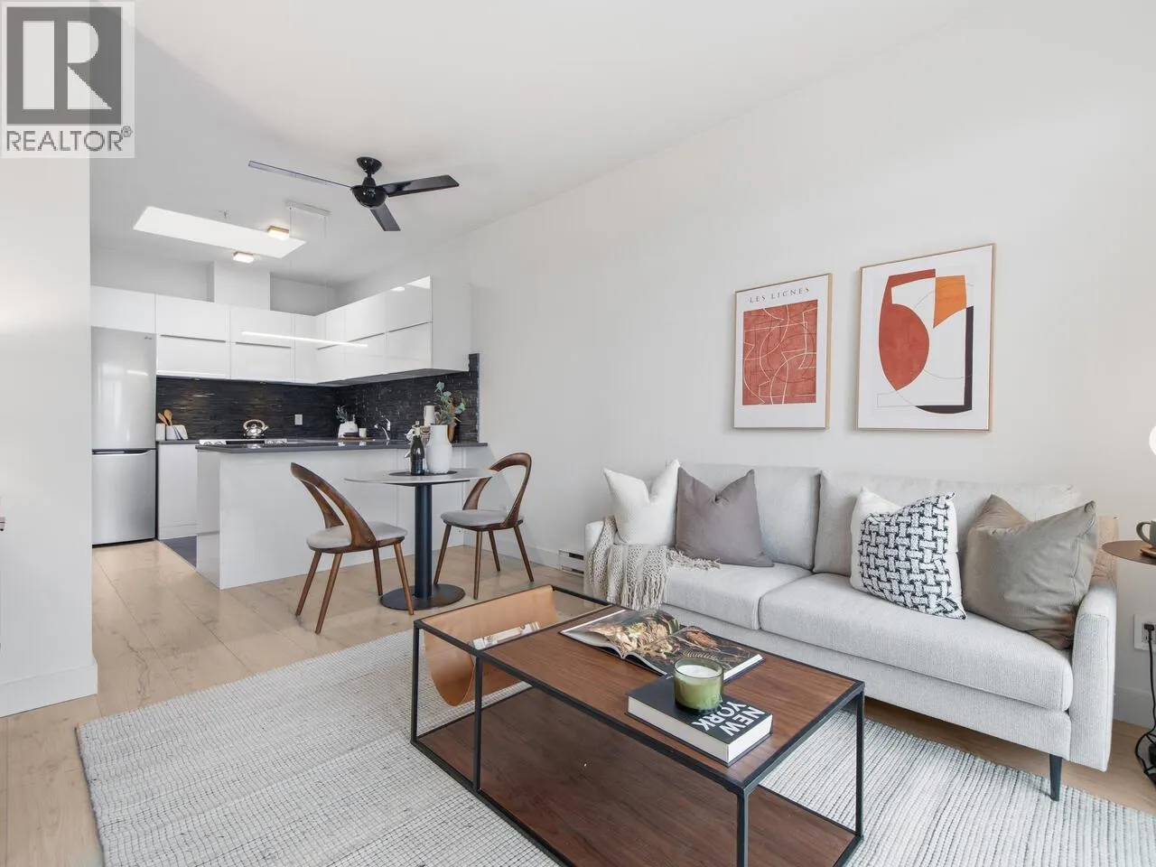 Welcome to the Mondella – experience the best of Fraserhood with this move in ready, top-floor penthouse home. Bathed in morning light from your east-facing balcony, this renovated home feels incredibly airy with 9′ ceilings and a bright skylight. The layout is exceptionally functional with no wasted space – feeling larger than its 681 square ft – it offers a