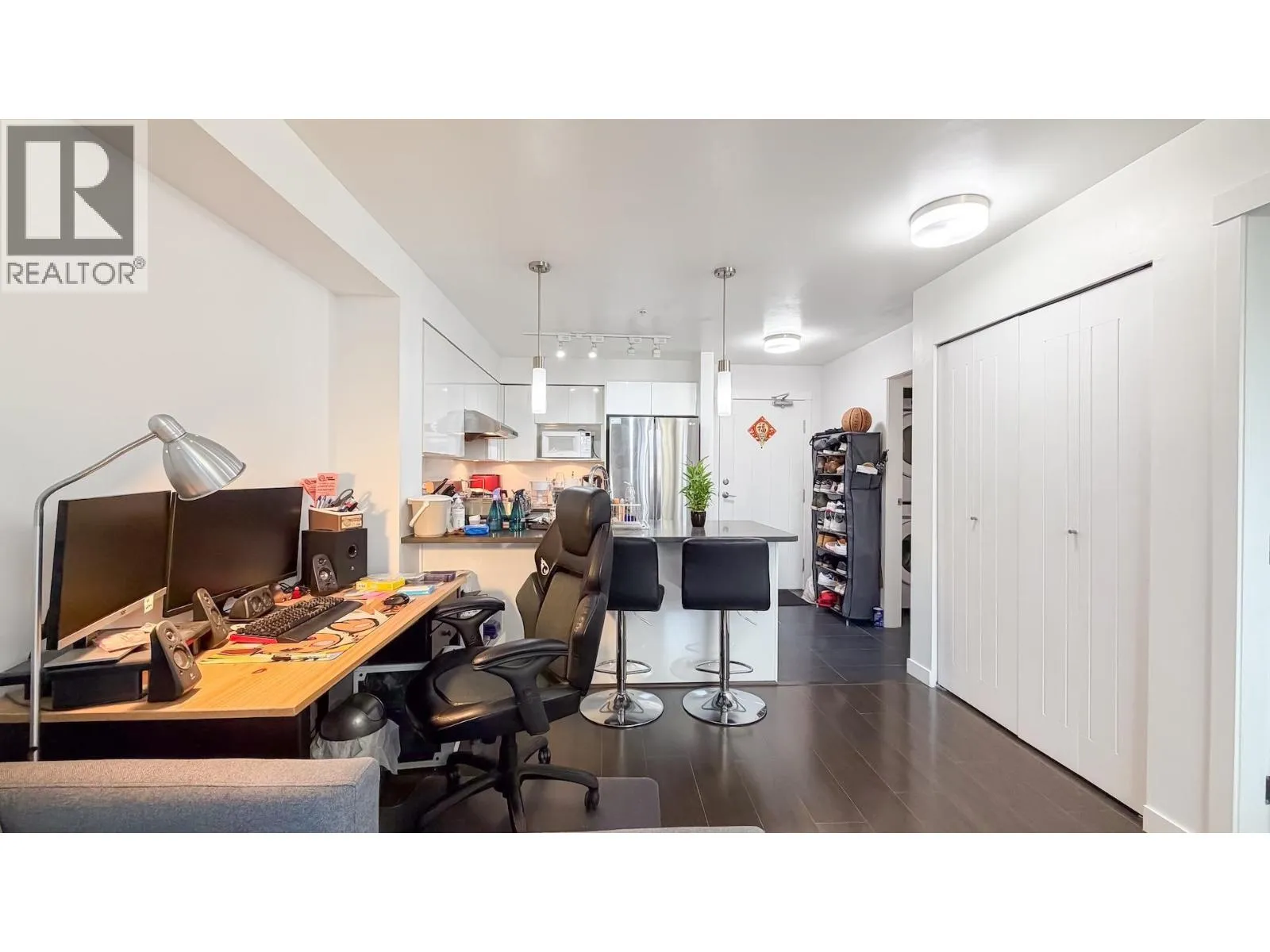 Welcome to this bright west-facing 1 bed, 1 bath home in the heart of Ironwood! Enjoy unobstructed city views from the impressive 80 square ft full-width balcony – perfect for BBQs and entertaining. Thoughtfully designed with a cheater ensuite and updated refrigerator, washer & dryer. Well-maintained 4-storey wood-frame building over retail with concrete parkade, fitness centre, and storage locker. Steps