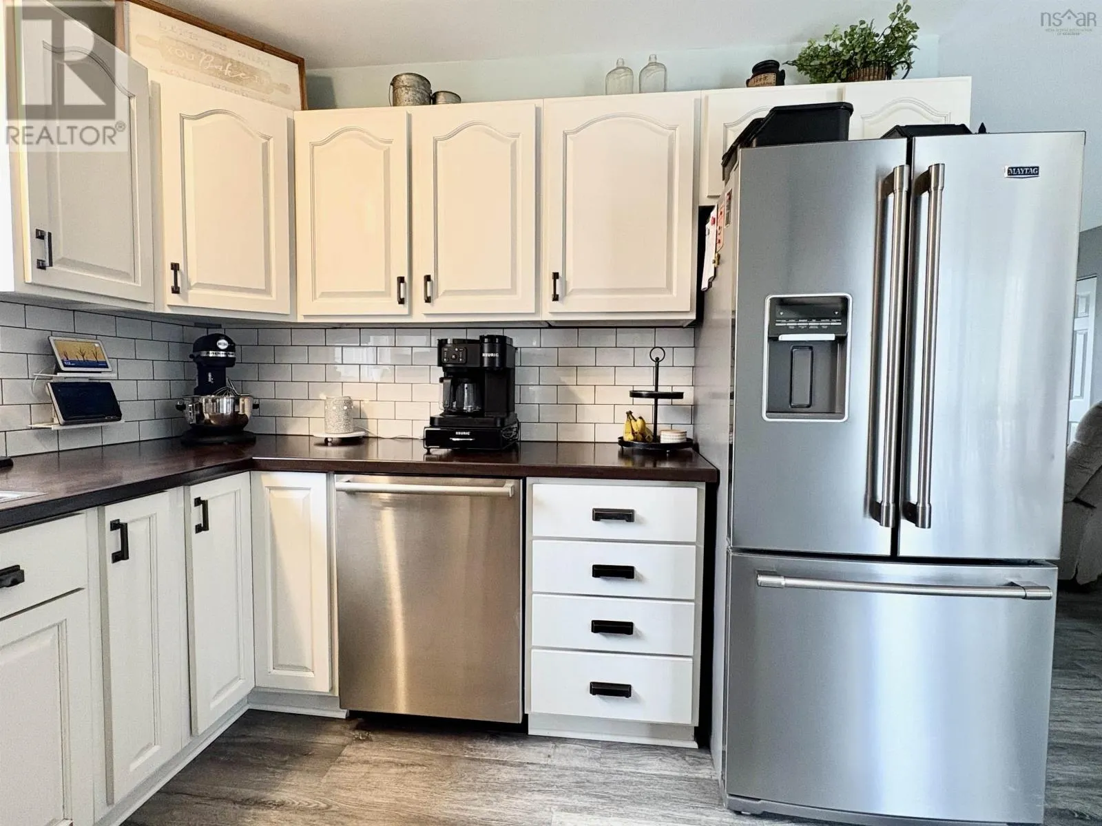 Welcome to 128 Highway 1, located in the highly sought-after North End of Yarmouth, an area known for its convenience, strong resale value, and family-friendly surroundings. This thoughtfully updated 4-bedroom, 2-bath home offers a functional layout with three bedrooms on the main level. The primary bedroom features a cheater ensuite, providing both private access and convenience for everyday living.