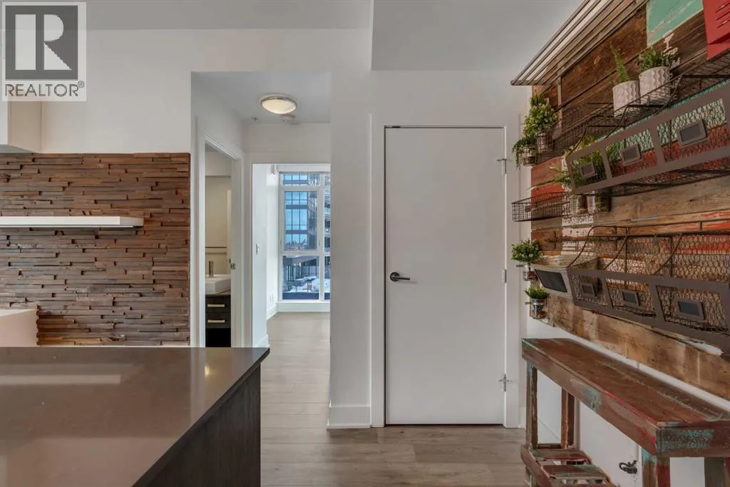 become part of your everyday routine. Stepping inside, you’ll notice the front closet has custom cabinets – custom storage for all your shoes and jackets! Further in, floor-to-ceiling East-facing windows bring in tons of light and give you clear views over the river and surrounding area. Step out onto your private balcony and you’ve got a great spot for coffee with a view in the morning! Back inside & towards the kitchen, space maximizing features have been designed into the home. Kitchen island doubles as a 4 person dining table, built-in low profile appliances and a vertical herb garden/extra pantry space. The kitchen opens up to the spacious living room with built-in media wall. The master bedroom features floor-to-ceiling windows with river views and comfortably fits a queen bed with space left over. A walk-in closet with custom shelving and a 3pc bath with a walk-in shower and full-height tile surround completes this room. Around the corner is another 4pc full bath with a soaking tub and the 2nd bedroom. The 2nd bedroom has matching floor-to-ceiling windows and partial river views. All the appliances are included with the sale of this home including in-suite laundry. Also included with your new condo is the BEST parking stall on P1… No driving around in circles just to park your car, an assigned storage locker which gives you plenty of storage for large sports equipment or Christmas decorations. This luxury condo comes with a full suite of premium amenities including a full fitness centre, dedicated yoga studio, rooftop sky lounge with panoramic views, and multiple social/entertaining spaces including a conference room—p erfect for hosting, working from home, or relaxing without ever leaving the building. If you do fancy a walk, you are just steps from St. Patrick’s Island Park, the Bow River pathway system, and countless shops, restaurants, cafés, and entertainment options. Enjoy close proximity to Studio Bell National Music Centre, the BMO Centre, Saddledome, Central Library Calgary, the CORE Shopping Centre, and Calgary’s bustling downtown business district. Commuting is effortless with quick access to transit and the free fare downtown LRT zone, putting the entire city within reach. Jumping in the car: Airport is a 16 min drive (17.5KM), & Banff is a 1 hr 30 min drive (128KM). (id:62650)