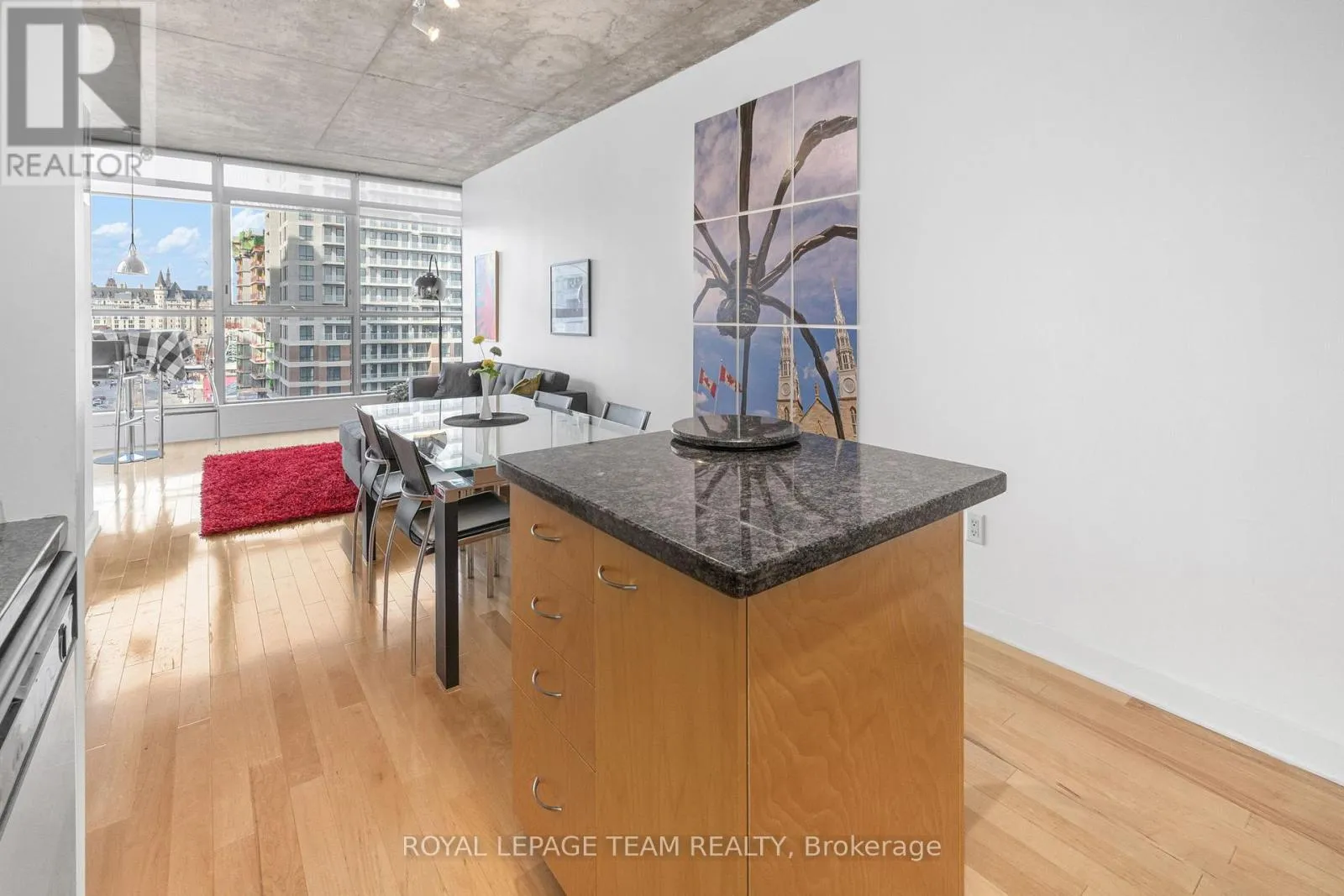 Move in ready 2 bedroom (or one bedroom plus den) furnished condominium available for a 6 month rental in the Byward Market. Floor to ceiling windows, unobstructed views of the market and the Parliament from the 12th floor. This open concept home features 9′ ceilings, hardwood floors, a Jack and Jill bathroom between the bedrooms and upgraded marble