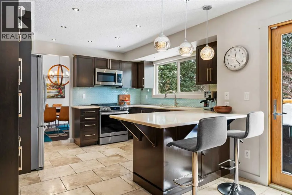 principal rooms create an inviting atmosphere ideal for both everyday living and refined entertaining, while large windows invite natural light to enhance the home’s bright and airy ambiance.The interior showcases a seamless layout that balances functionality with style. A well-designed kitchen provides ample workspace and storage, perfectly suited for culinary enthusiasts and gatherings with family and friends. The adjoining living and dining areas create a natural flow, offering a comfortable yet upscale setting that adapts effortlessly to both intimate evenings and larger celebrations. The hardwood floor in the family room adds warmth and character, complementing the home’s welcoming atmosphere. Attention to detail throughout contributes to a strong sense of quality and care evident in every space. The property has also been enhanced with new doors and windows by PlyGem, improving both efficiency and overall aesthetic appeal.The professionally finished basement (2025) expands the home’s versatility, featuring an enlarged bedroom/office window that allows for increased natural light, a beautifully appointed new bathroom complete with a sauna, and a combination of luxury vinyl plank and carpet flooring that provides both durability and comfort. Additional living areas offer flexibility for a home office, recreation space, or media room, ensuring the property meets the evolving needs of modern living while maintaining a cohesive sense of comfort and sophistication throughout.Outdoor spaces extend the home’s appeal, offering an ideal setting to enjoy the changing seasons. The fully landscaped, low maintenance yard has been thoughtfully designed for ease of care and includes biannual tree pruning, creating a beautiful and functional environment year-round. A new eavestrough system (2025) further enhances exterior upkeep and long-term value. Whether hosting summer gatherings, enjoying morning coffee, or simply unwinding in a quiet moment, the exterior environment complements the interior living experience while providing a wonderful balance of privacy and accessibility.Welcome to elevated living in the highly desirable community of Oakridge in Calgary, where tree-lined streets, nearby parks, and a strong sense of community create an exceptional place to call home. Book your private showing today! (id:64429)