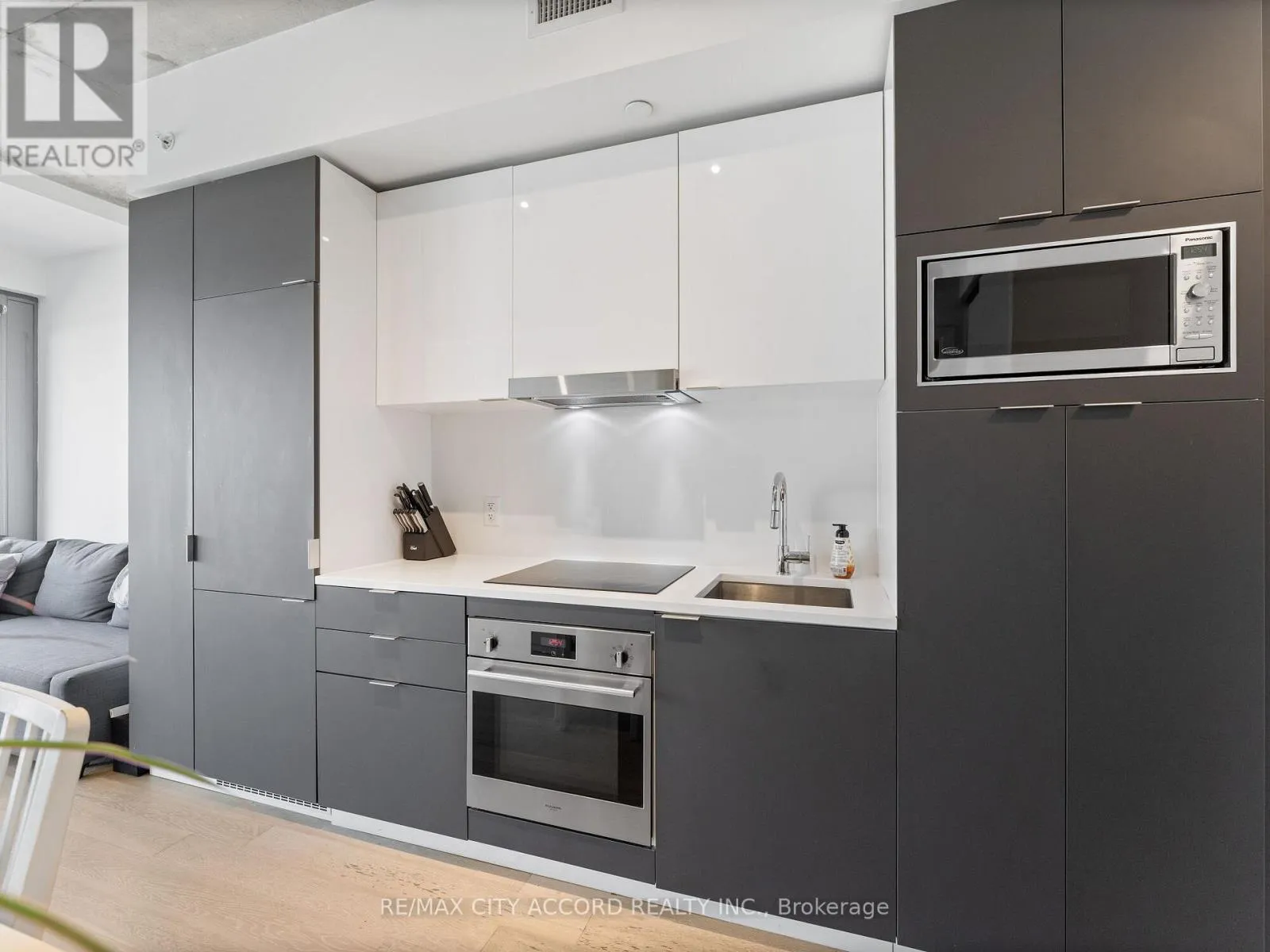 Bright and modern 1-bedroom in River City 3 featuring a smart layout, 9′ exposed concrete ceilings, floor-to-ceiling windows, hardwood floors throughout, and a contemporary European kitchen with integrated appliances and quartz countertops. Enjoy your own private balcony and resort-style amenities: gym, party room, outdoor pool, theatre, and visitor parking. Unbeatable location steps to downtown, transit, restaurants, shops, and hospitals, with