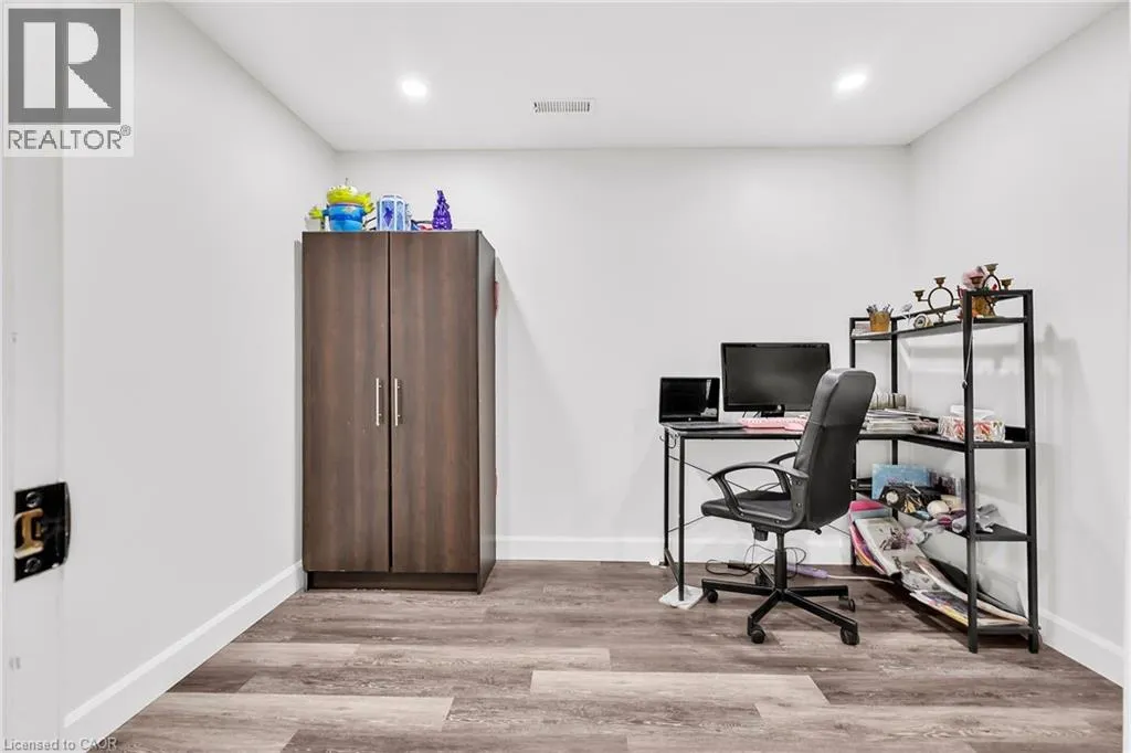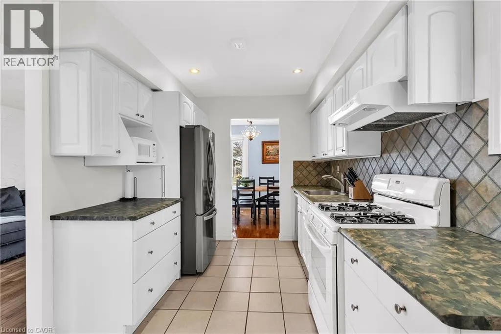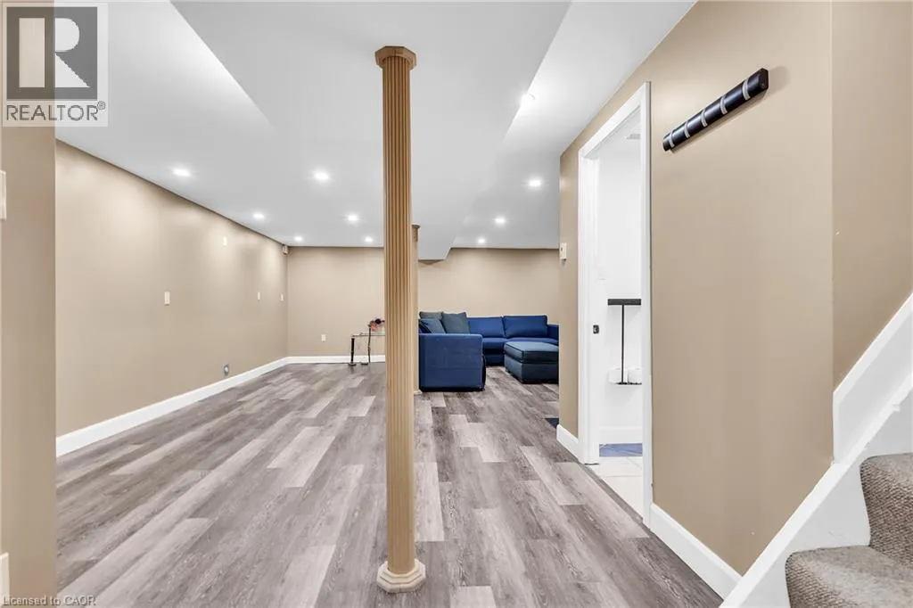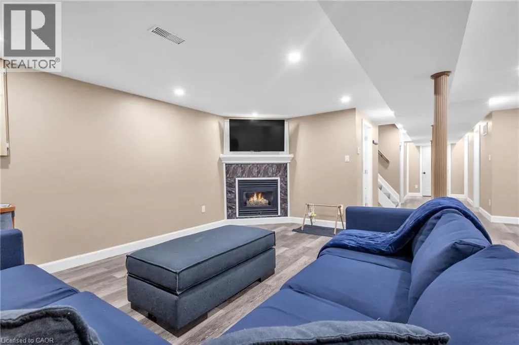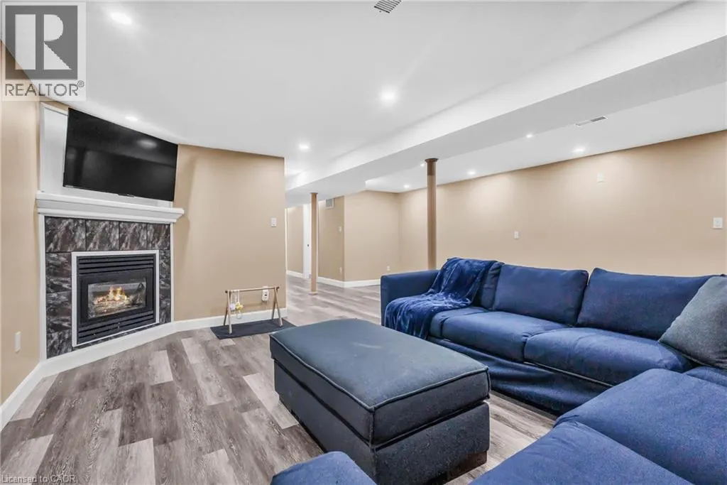 Beautifully maintained detached bungalow on a premium pie-shaped lot in sought-after Stoney Creek Mountain! This home offers 3 bedrooms and a full bath above grade, with a bright open-concept living and dining area. The finished basement with separate side entrance features a large rec room with gas fireplace, full bathroom, two spacious bonus rooms (ideal for home office, gym, or