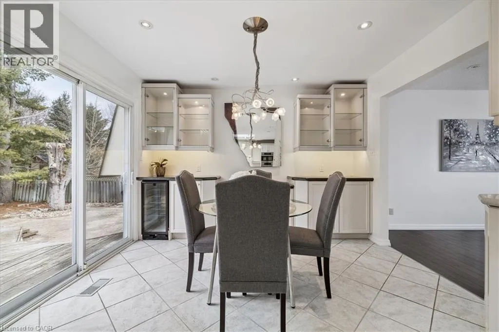 major commuter routes & urban amenities. Lovingly maintained & updated by original owners, the heart of this home features a light filled, spacious custom kitchen with generous amounts of cabinetry and fabulous backyard views. Sliding glass door to the large tiered deck allows convenient access to take in the outdoor sunshine, or build a fabulous 4 season sunroom addition! The incredible backyard awaits your personal touch to curate and create endless entertaining memories. Freshly painted throughout, this home offers a functional layout with a bright, light filled formal living room, sizeable primary bedroom with upgraded bathrooms featuring double under mount sinks, vanity with stone counter, wainscotting, crown moulding, skylight, seamless glass shower & additional separate 2-piece ensuite. 2 additional sizeable bedrooms complete the main level. The lower level expands the potential, featuring a spacious recreation room w/ fireplace, office/additional bedroom/flex space, laundry & workshop, well suited for a future media lounge, private guest suite, gym, or wine room. A cedar closet adds thoughtful storage with natural protection for seasonal items. Convenient separate entrance staircase to double garage with ample driveway (6) parking. Your future in beautiful Carlisle is calling! (id:62650)
