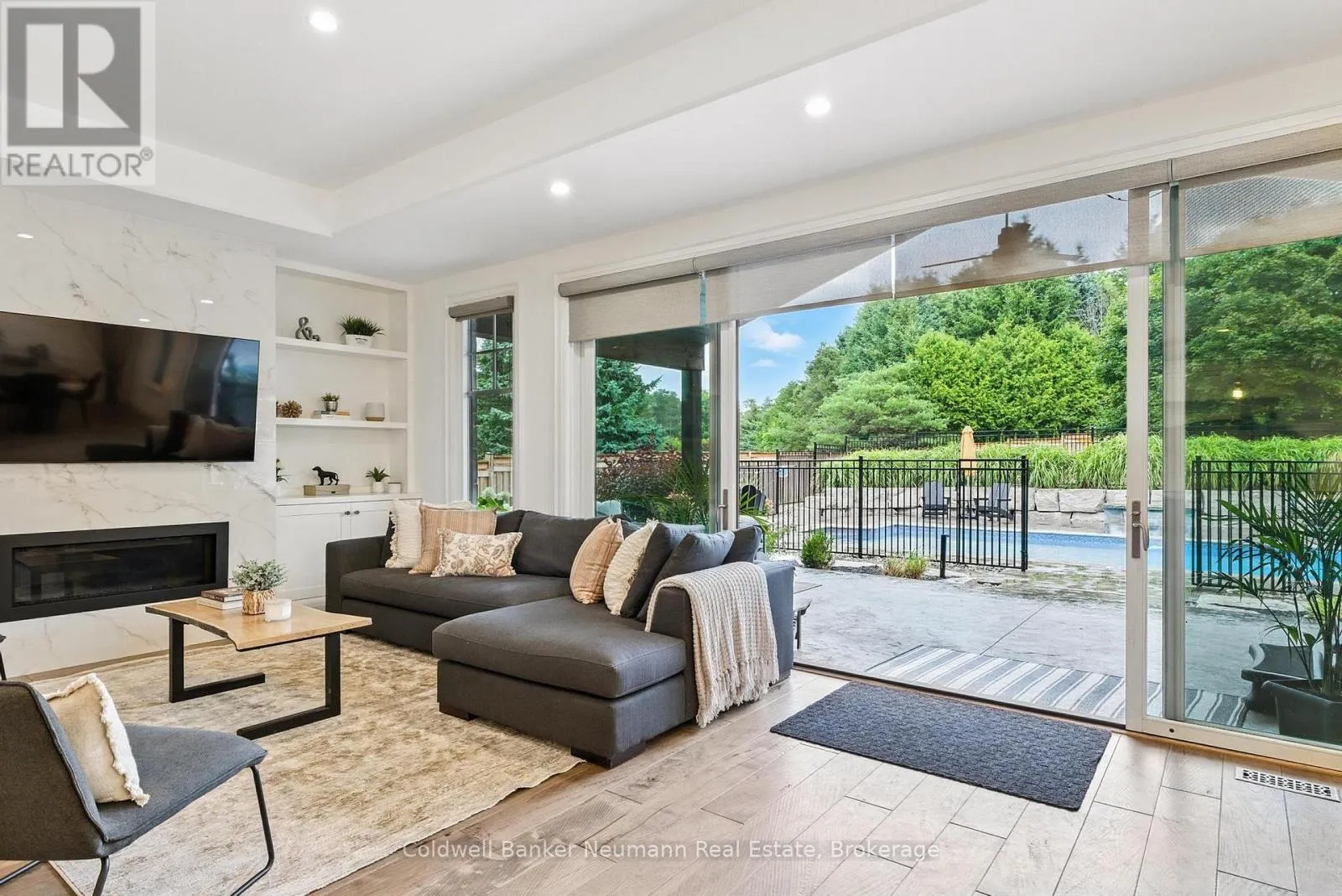Welcome to 45 Amalia Crescent, a beautifully designed and custom-built sprawling bungalow offering nearly 5,000 sq ft of finished living space in the heart of Belwood. At the center of the home, a chefs kitchen showcases Sub-Zero appliances, stone countertops, and an induction range by Fulgo Milano. The open concept living room features a gorgeous gas fireplace bookended with custom