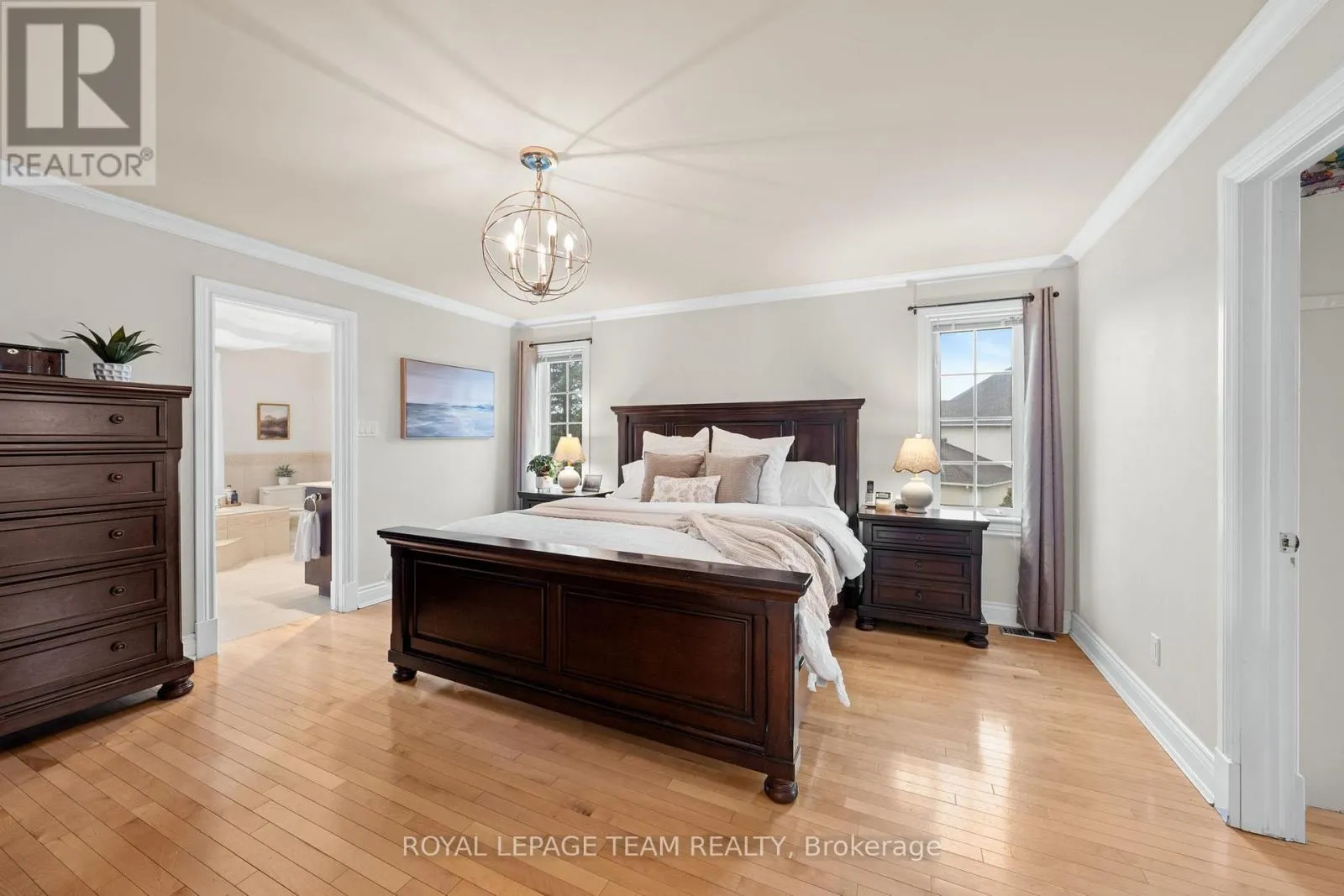 Located on a quiet cul-de-sac in the desirable Manotick Estates neighbourhood, this exceptional residence combines a prime location with an inviting lifestyle. Inside, the generously proportioned layout is perfect for family living and entertaining. A striking two-storey foyer welcomes you, featuring a staircase with wrought iron railings. The main floor showcases French doors, hardwood flooring, and crown mouldings,