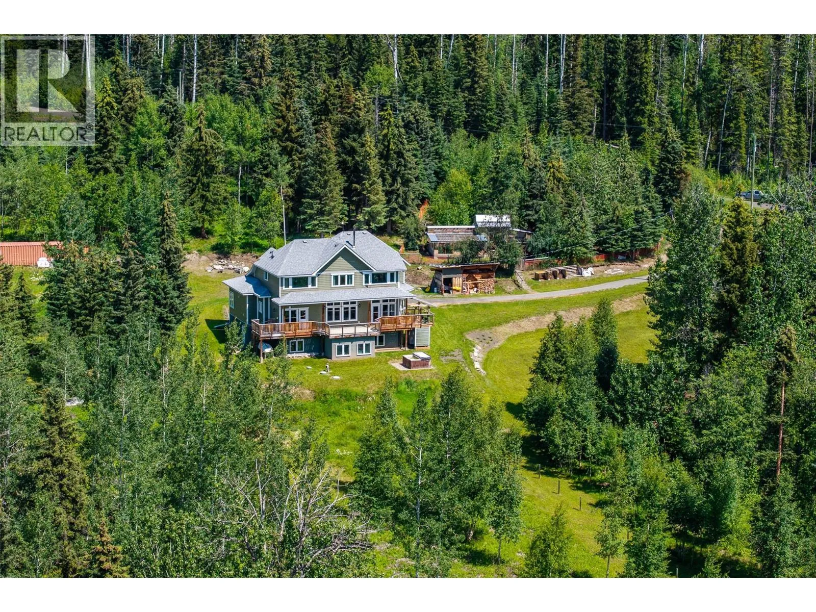 Private 20-Acre Retreat Near Sun Peaks & Kamloops! This 4,776 sq.ft. 6 bed, 4 bath custom home (2011) offers space, comfort, and nature just 45 mins from Kamloops and 40 mins from Sun Peaks. Enjoy an open-concept main floor with vaulted ceilings, wood stove, rec room, library/den, and huge kitchen. Upstairs features a spacious primary suite + 3 more beds.