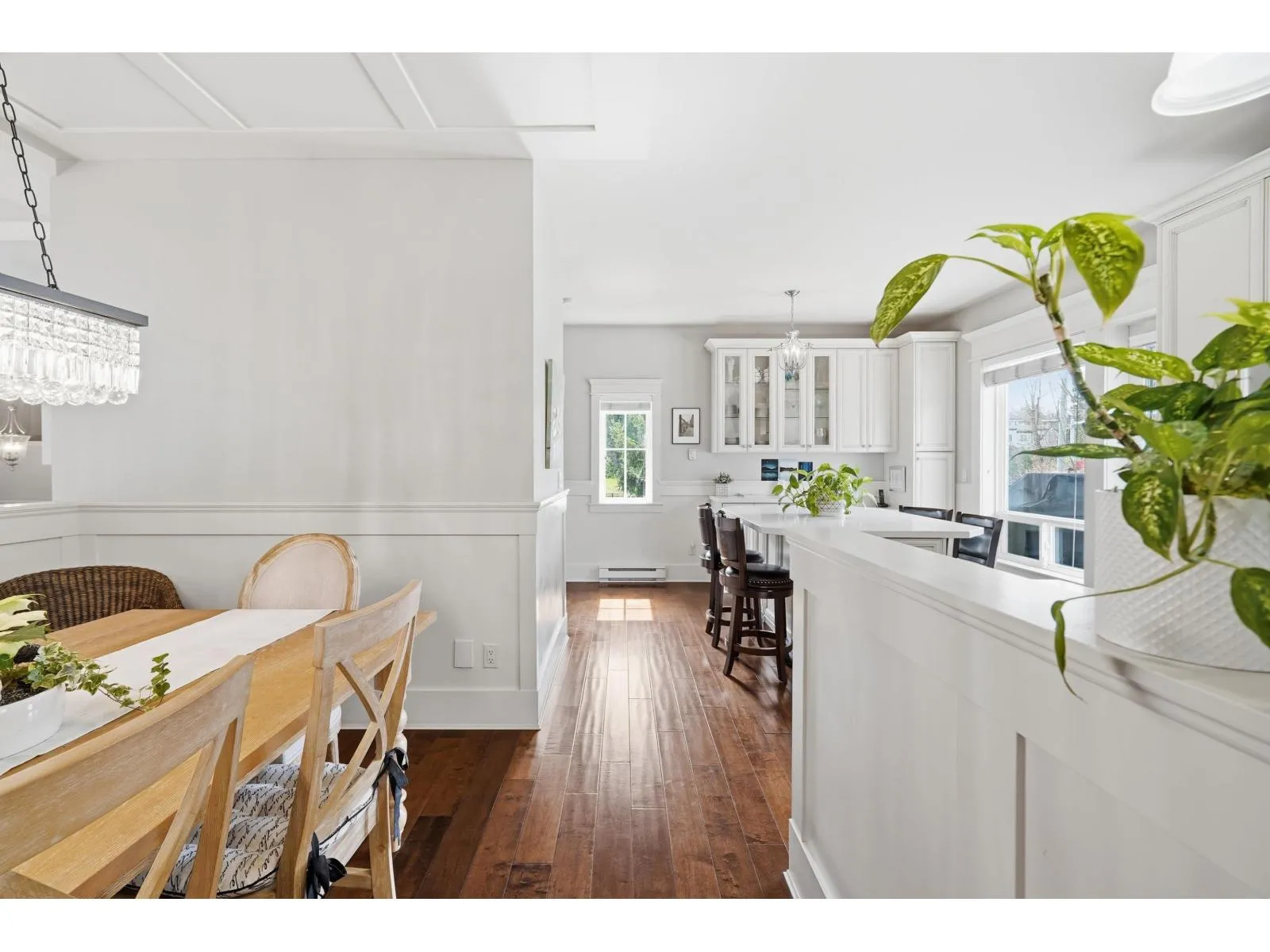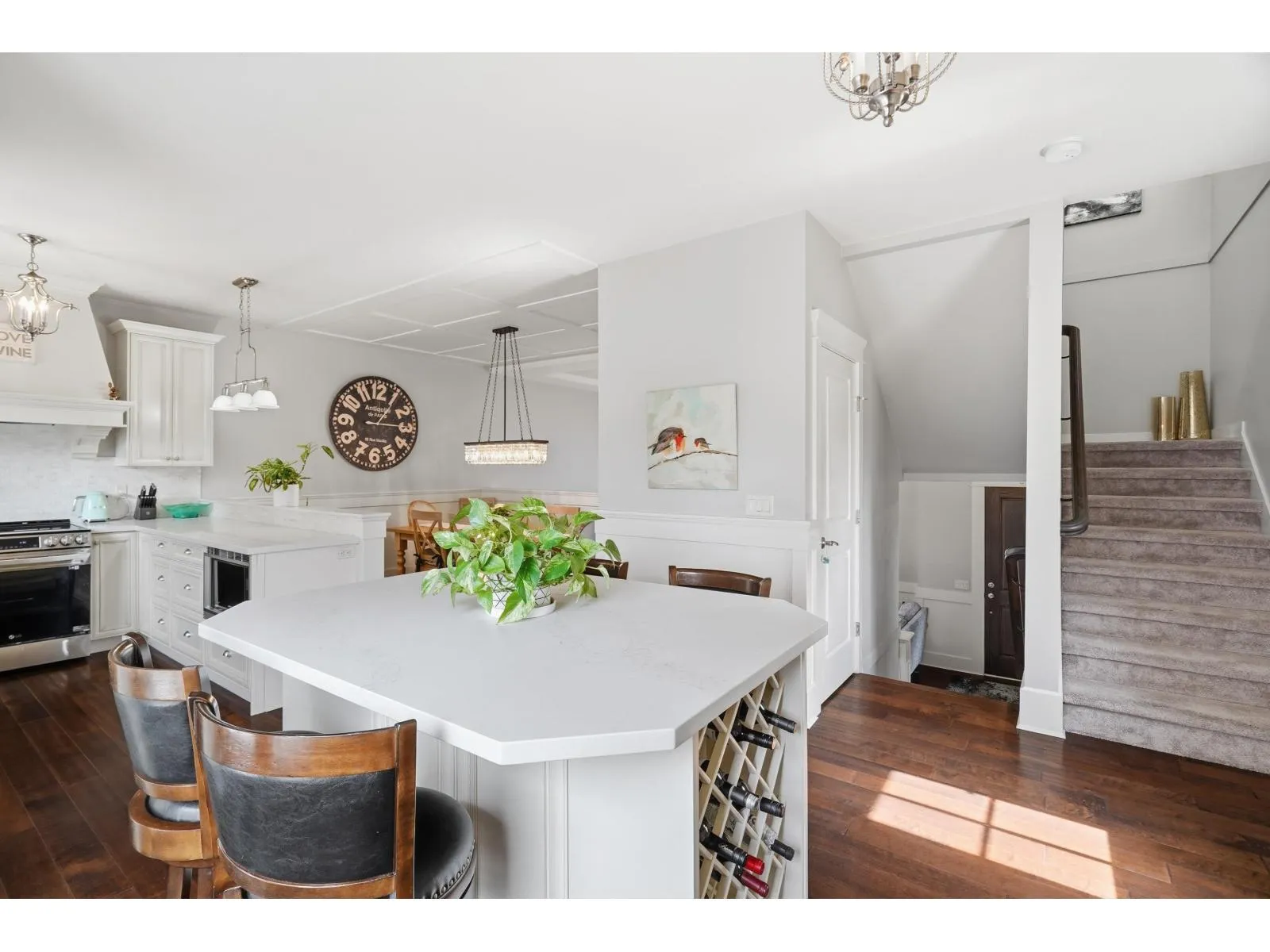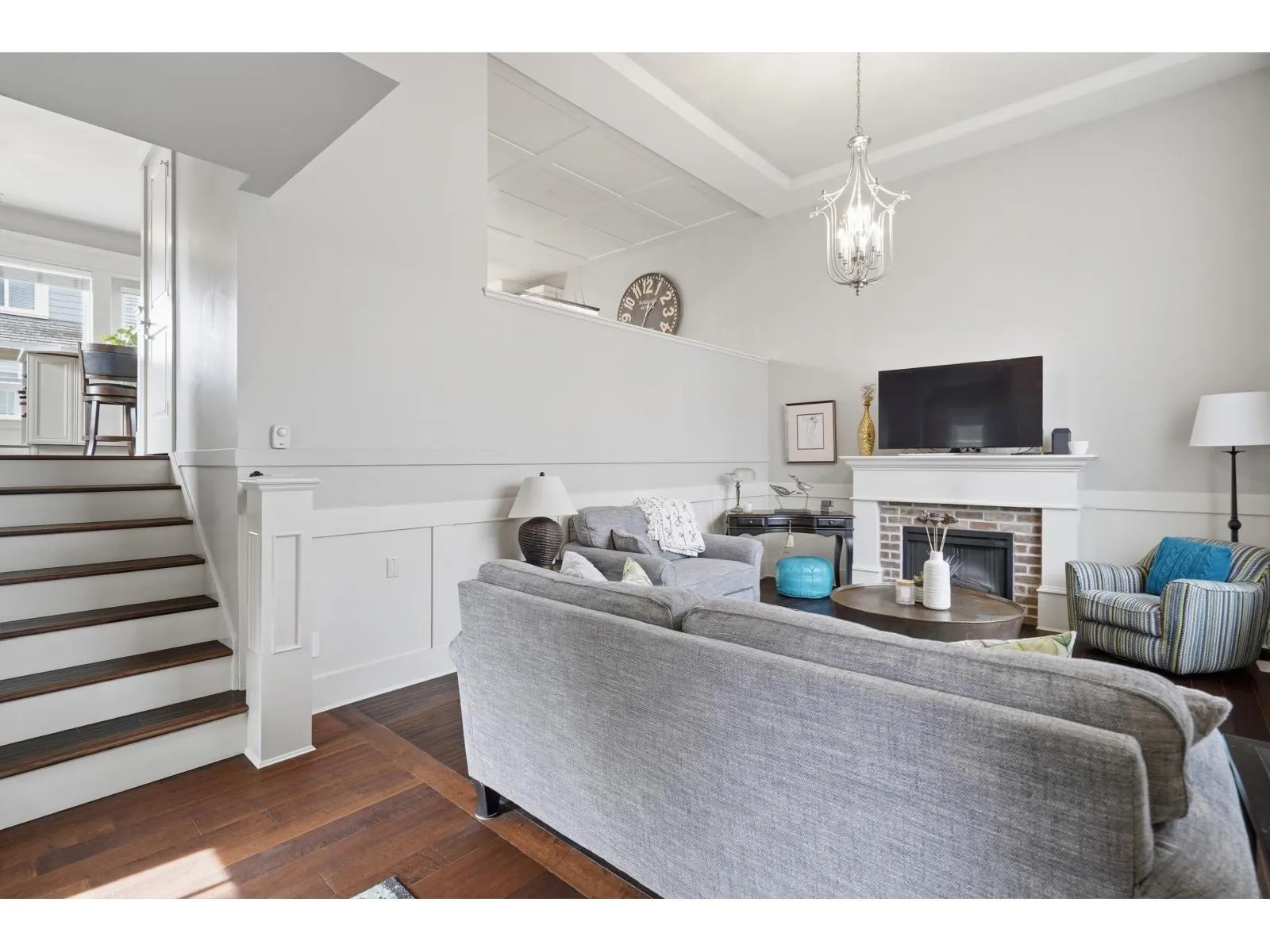 Experience boutique-style living at its finest in South Surrey. This impeccably maintained 1,740 sq. ft. residence offers a rare combination of privacy and grandeur. The expansive living room creates a dramatic first impression with its 14′ ceilings and cozy window bench. Culinary enthusiasts will love the kitchen’s maple cabinetry and granite surfaces, seamlessly flowing into the family room and private