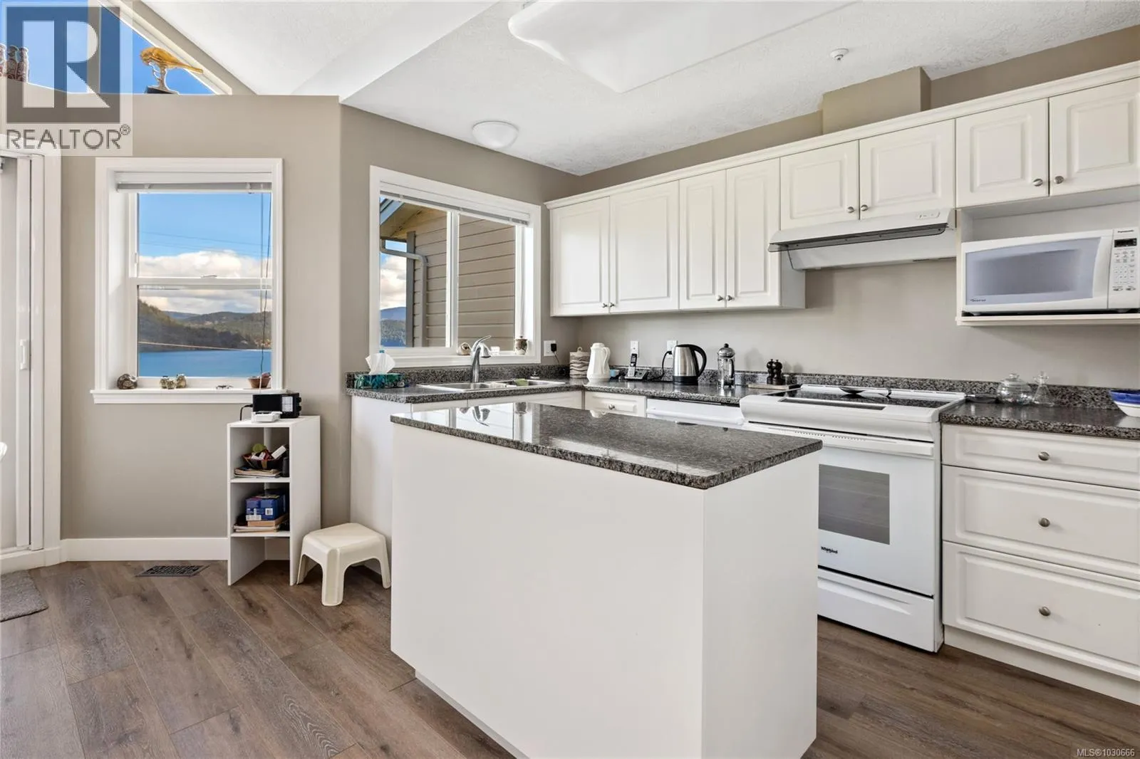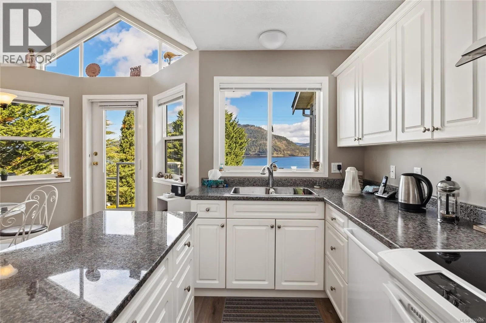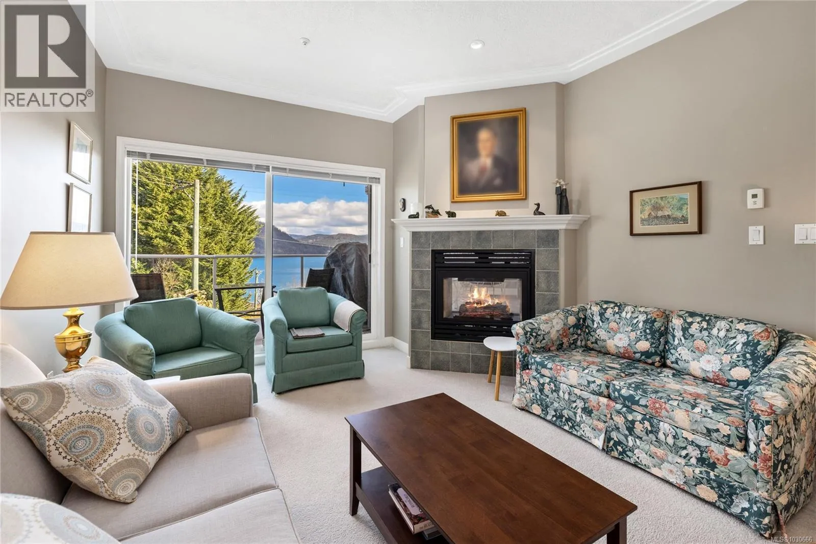 Perched above Cowichan Bay, this lovely 2 bed + den, 3 bath townhome offers stunning ocean and mountain views. The main level flows effortlessly from the entry past a bright home office/den into the open-concept dining, living, and kitchen area. The well-appointed kitchen features a large central island, breakfast nook, and a cozy double-sided gas fireplace that also warms the