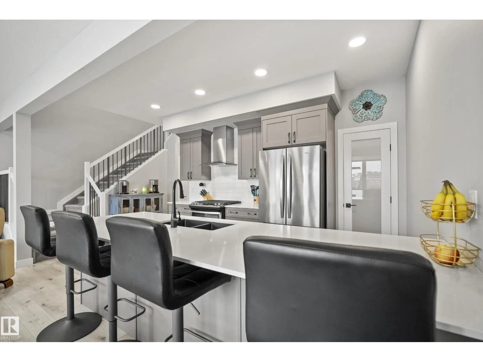 Located in a quiet cul-de-sac in the sought-after community of Robinson Leduc, this beautiful 1947 sq ft two-story home offers the perfect blend of modern comfort and functional design. This stunning property boasts an oversized double car garage featuring an 8′ garage door, and a main floor where floor-to-ceiling windows across the back fill the space with natural light. The