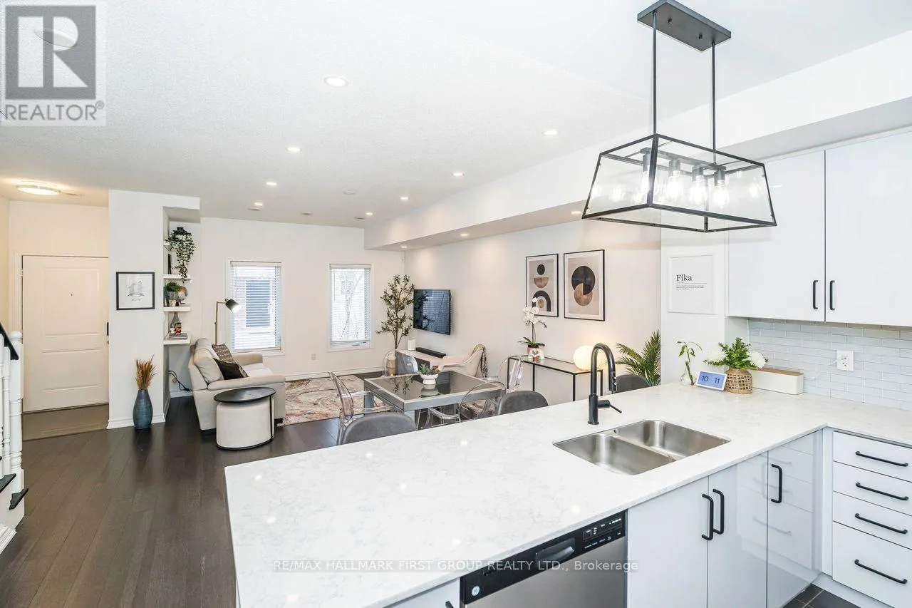 Welcome to this absolutely stunning urban townhome located in the highly desirable PringleCreek neighbourhood of Whitby. This beautifully upgraded home offers modern living with 9-footceilings, stylish finishes, and thoughtful updates throughout.Extensively upgraded in 2020,this home features new laminate flooring throughout, elegant oak stair steps and risers, aquartz kitchen countertop, updated kitchen hardware, faucet, and lighting, and a refinishedmain staircase that