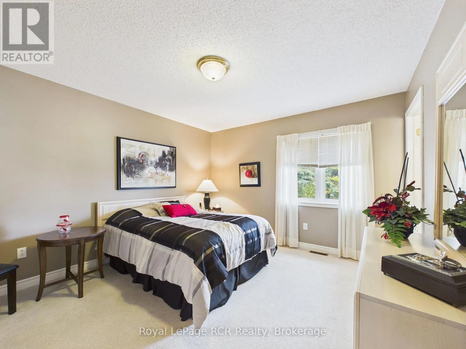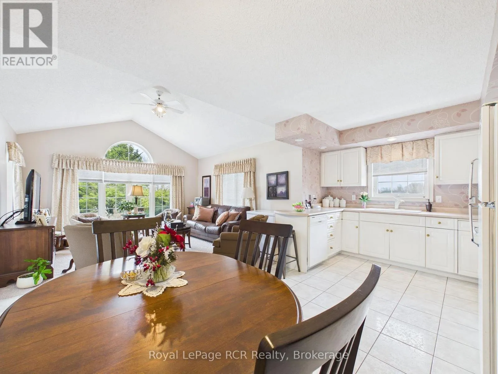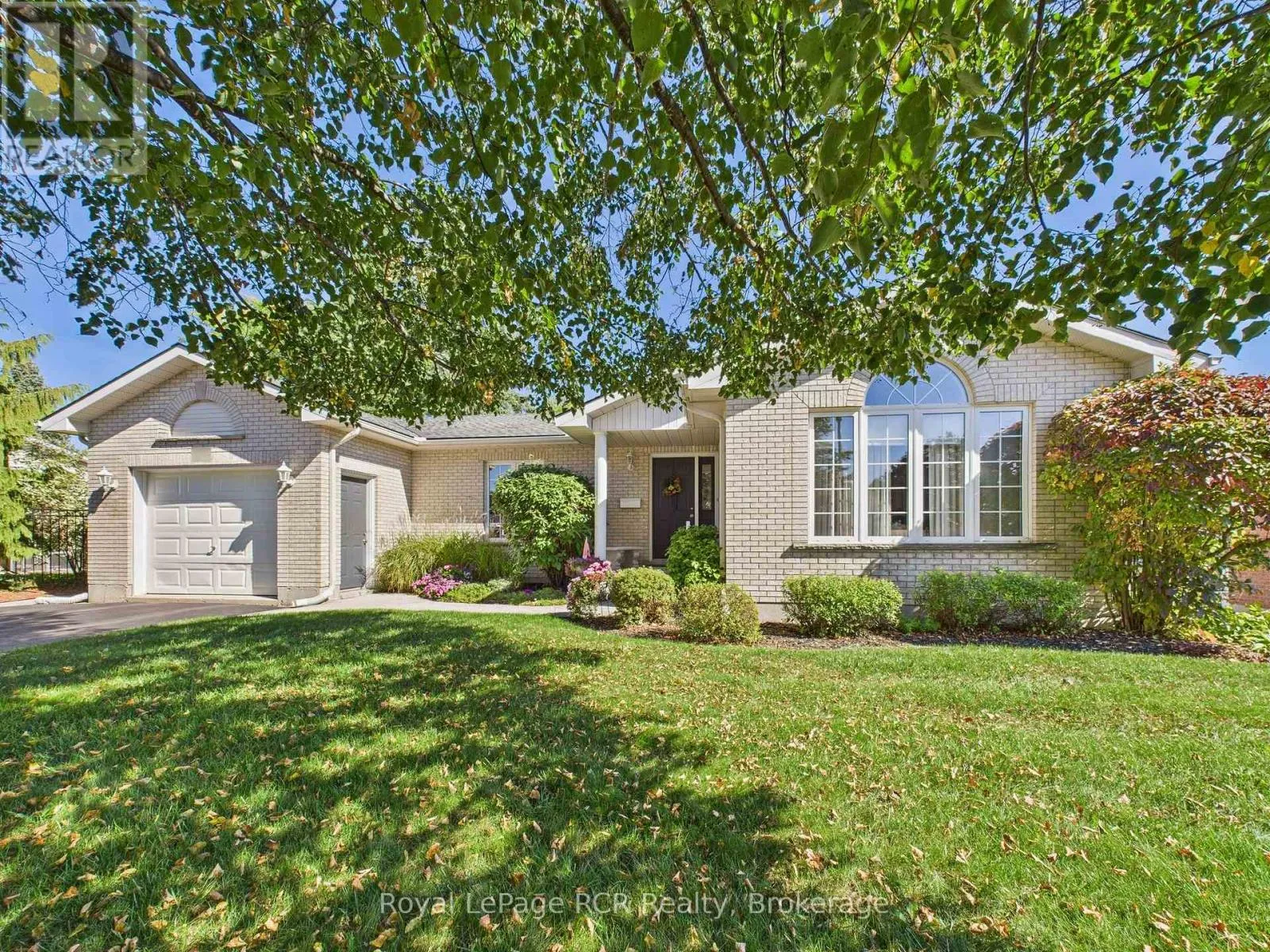 Welcome to this beautifully maintained brick bungalow, proudly built by Royal Home in 1994 and nestled on a mature, landscaped lot with outstanding curb appeal. The double-wide asphalt driveway and classic brick façade make a lasting first impression, complemented by lush greenery and manicured gardens. Inside, the open-concept kitchen and living room create a bright, functional heart for the home.