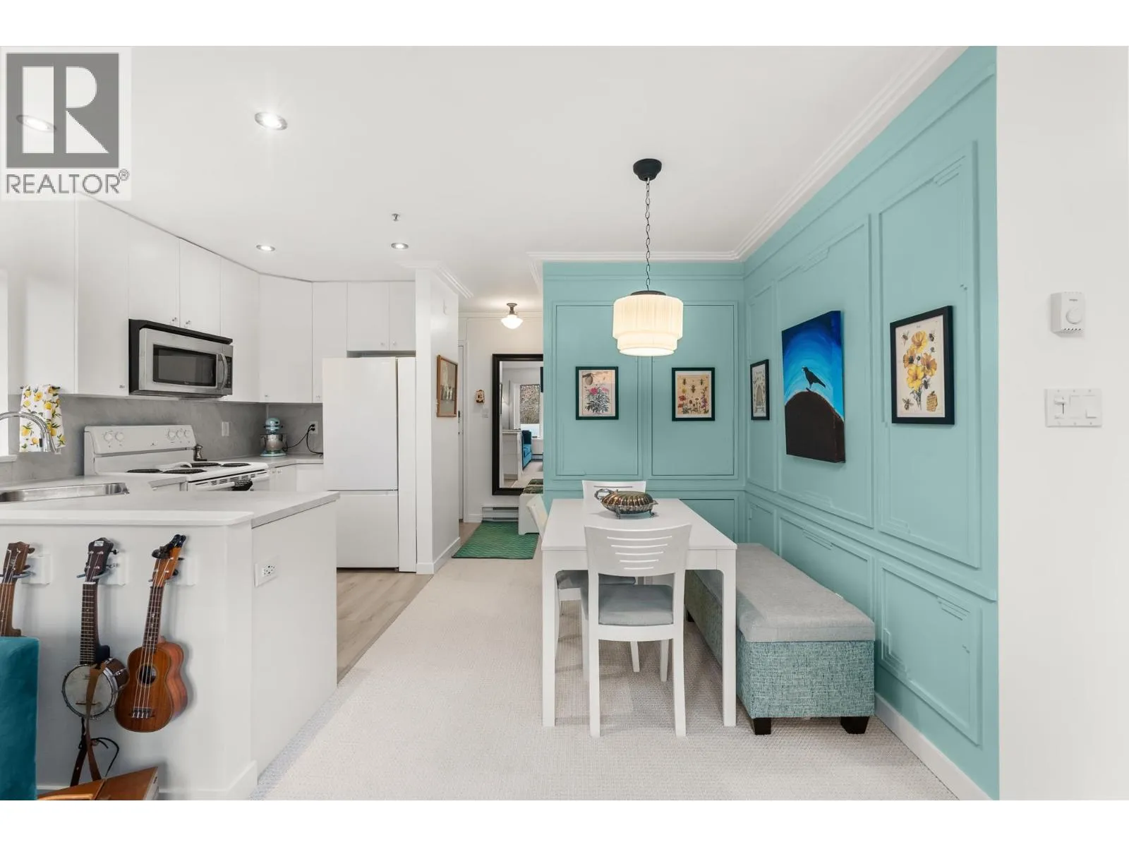Perched on the top floor corner looking south, this open plan 1 bed & 1 bath almost 600 sqft apartment is in the sought after Connaught Estates. An abundance of windows on three sides plus a skylight in the bedroom floods this home with light. An open kitchen flows into the living and dining room, smart built ins throughout for