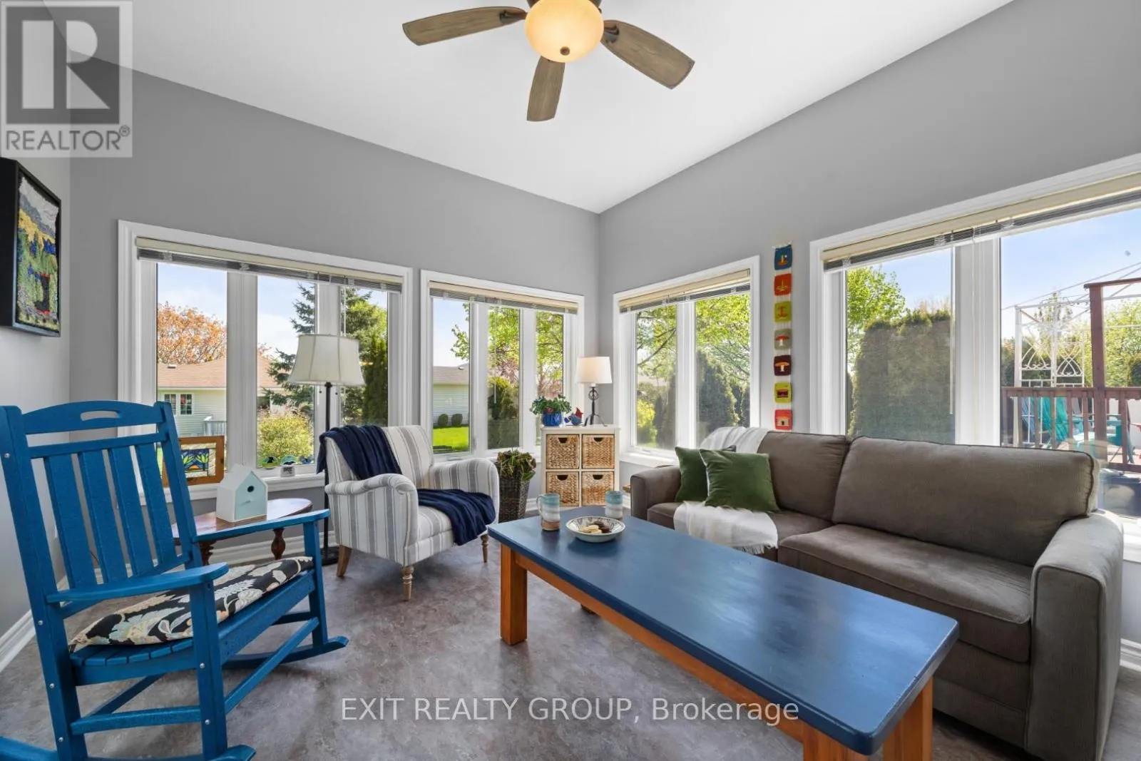 EXIT TO THE COUNTY! WELLINGTON ON THE LAKE ADULT LIFESTYLE COMMUNITY. FREEHOLD. Thoughtfully designed, well maintained, bright 1950 sq ft turnkey home. Featuring bonus 4-season sunroom with private feeling back yard. Vaulted and 9′ trayed ceiling, hardwood floors, quartz countertop, beautiful finished spacious 2-bedroom 3-bathroom bungalow in the adult lifestyle community of Wellington on the Lake. This home provides open-concept