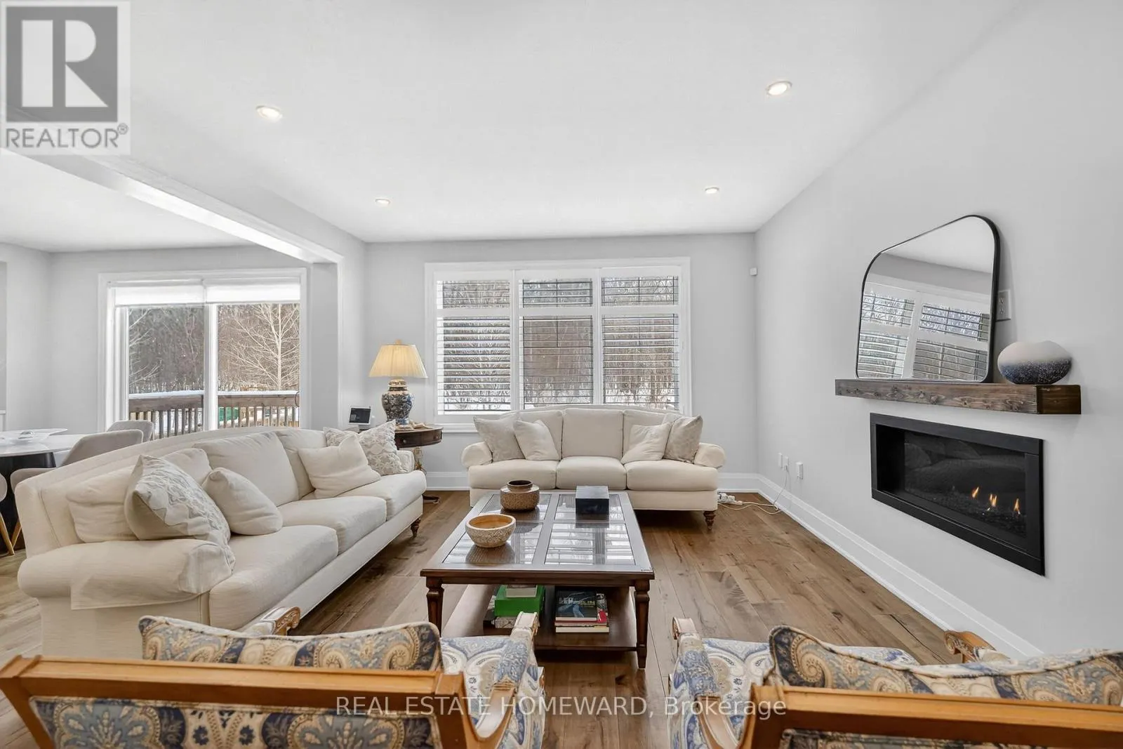 Absolutely stunning home situated on one of the largest premium lots backing onto green space, offering exceptional privacy. Beautifully upgraded throughout with high-end finishes, high ceilings, pot lights, and 7-inch baseboards. Welcoming foyer with built-in bench. Elegant dining area opens to a bright living room with gas fireplace and California shutters. Custom eat-in kitchen featuring stainless steel appliances, quartz countertops,