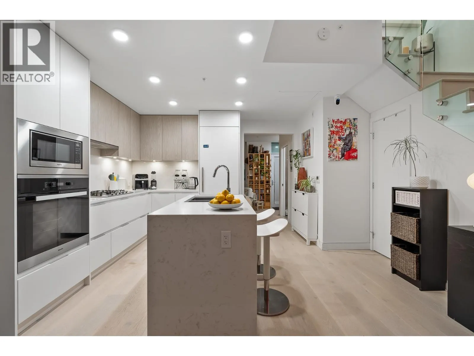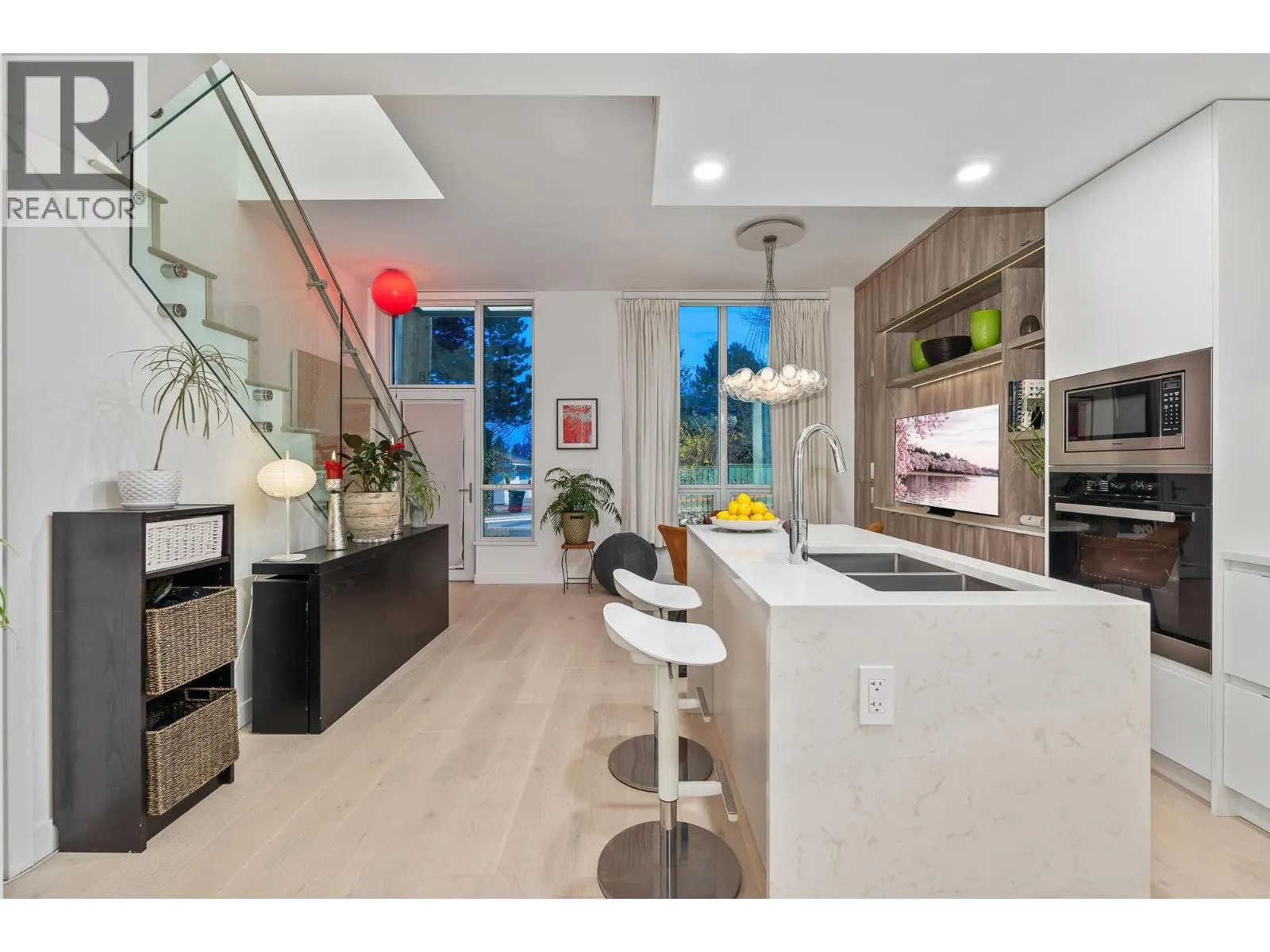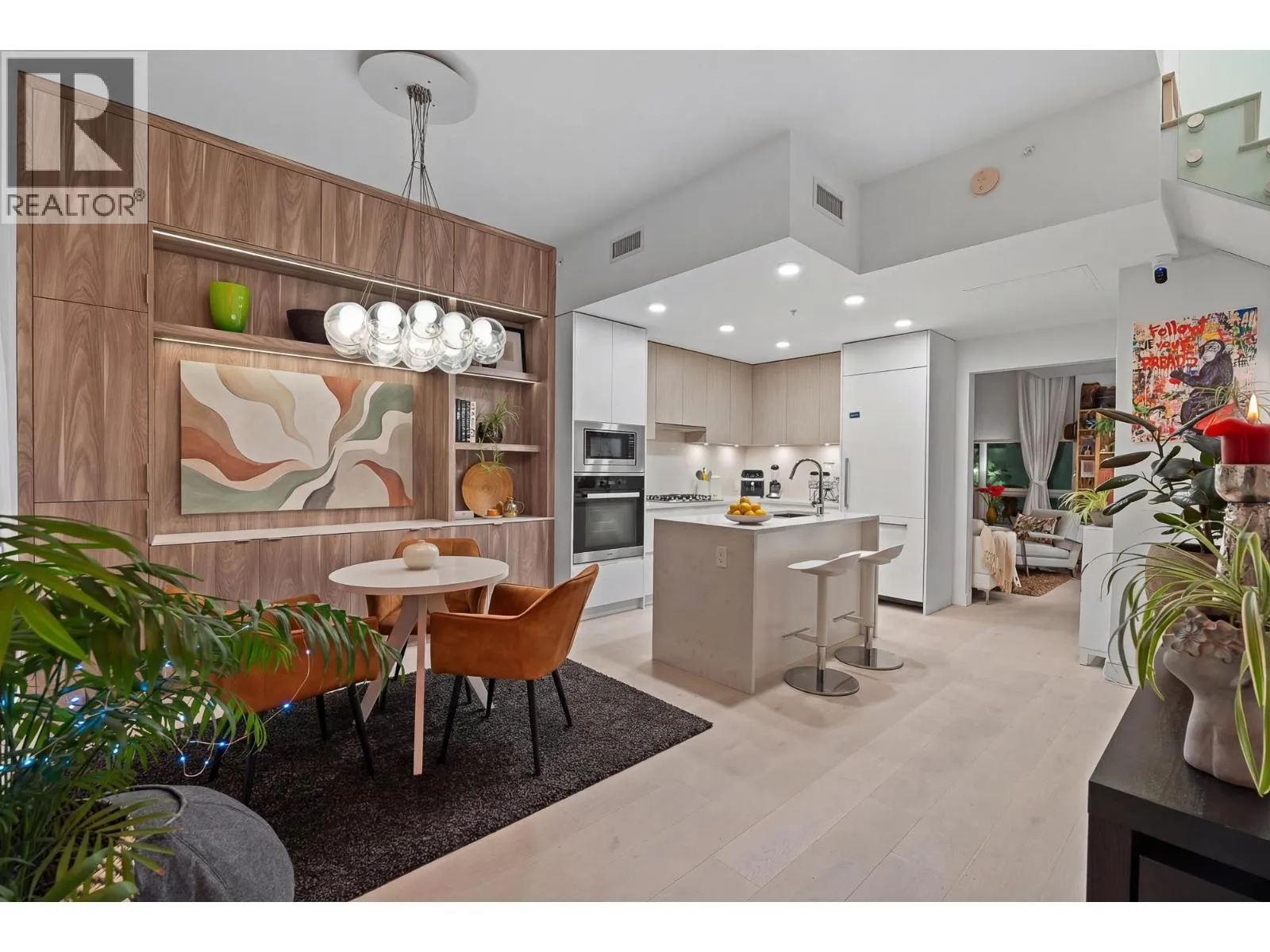 This beautifully appointed 3 bedroom, 3 bathroom residence offers refined living with soaring double-height ceilings, expansive windows, and exceptional natural light throughout. Designed by Rafii Architects and built by award-winning general contractor ITC, the main level features a stunning chef´s kitchen with sleek integrated cabinetry, premium Miele appliances and quartz waterfall island flowing seamlessly into elegant dining and living spaces.