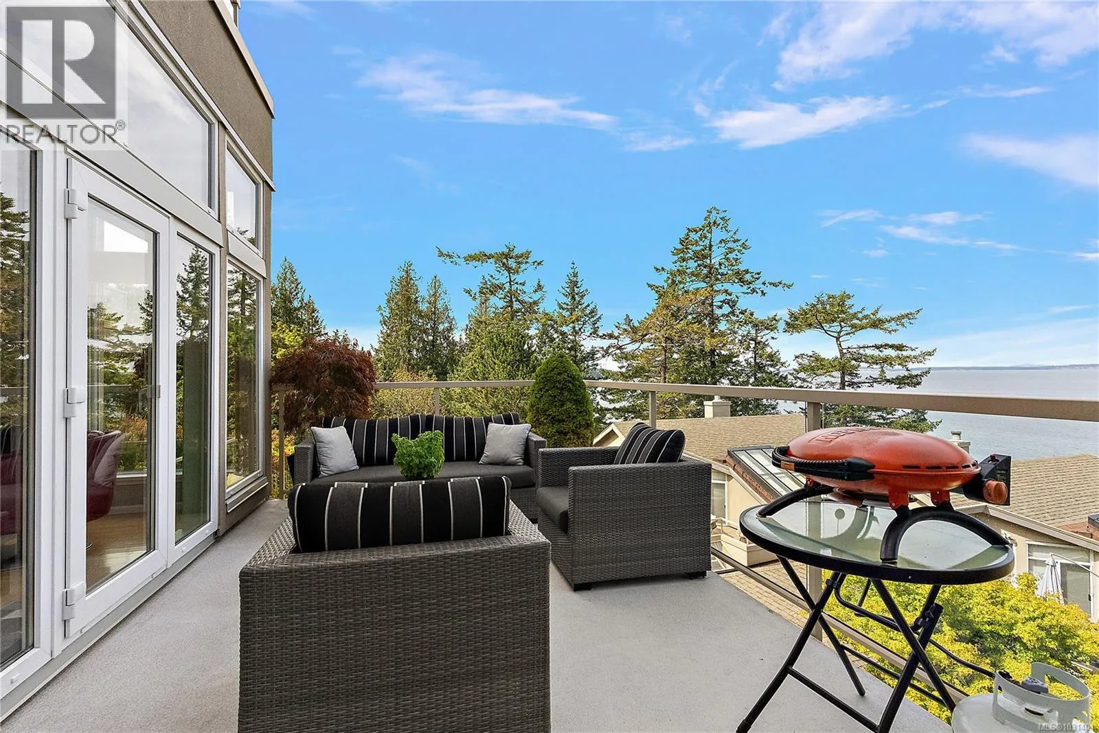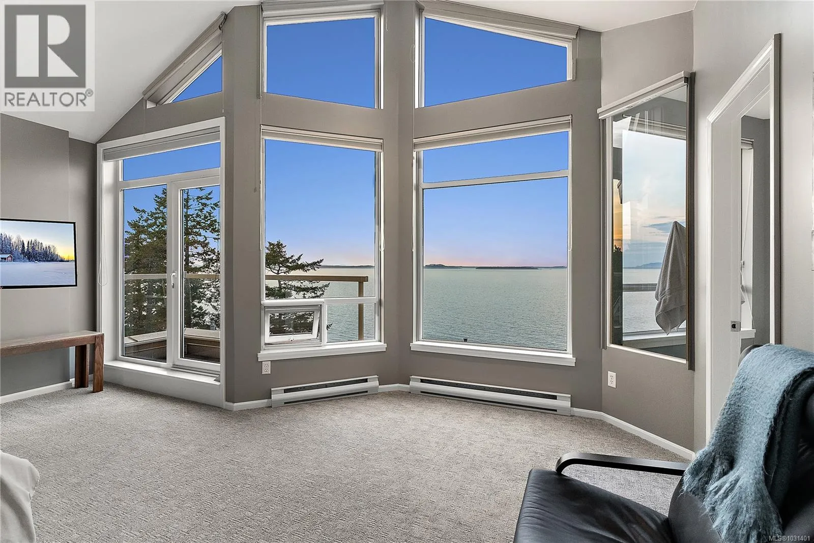 STUNNING, extremely private and super bright 3-bedroom (or 2-bedroom plus den) two-level townhome in the exclusive Seascape oceanfront community offering georgeous 180-degree views of Haro Strait, islands, and Mount Baker from almost every window, featuring gleaming maple floors, three brand new luxuriously finished bathrooms, fresh paint throughout, new carpeting in bedrooms, several skylights, and an elegantly refinished fireplace in the