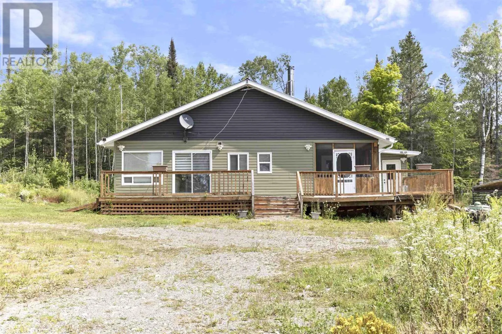 Located in an unorganized township, this 239-acre property approx. 15 minutes north of Iron Bridge off Chiblow Lake Road boasts a beautifully finished 2 bed, 2 bath house, a large shop and a cabin that requires finishing and could provide extra income. The home was built in 2017, powered by a solar system with 12 350 V. panels, and 10
