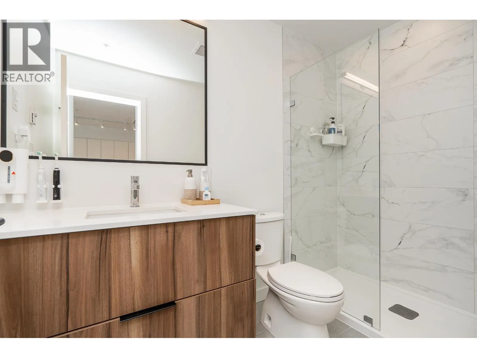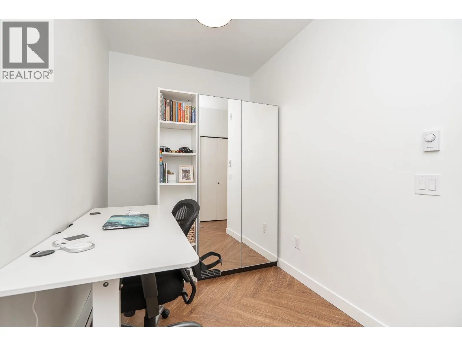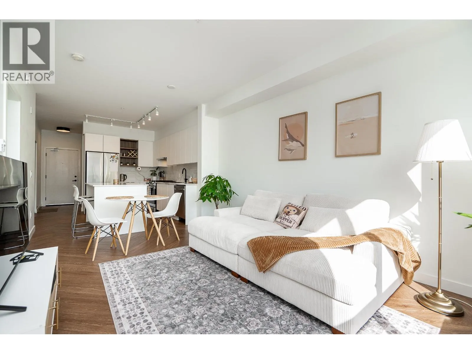 South-facing 1 bed, 1 bath + den on the quiet side of Clyde by Port Homes! Offering 685 square ft with an open concept layout. Enjoy a modern kitchen with a contemporary design featuring soft close, flat-panel cabinetry, quartz countertops, a gas cooktop, and an island seamlessly flowing into the living area. Step out to the fully covered balcony for