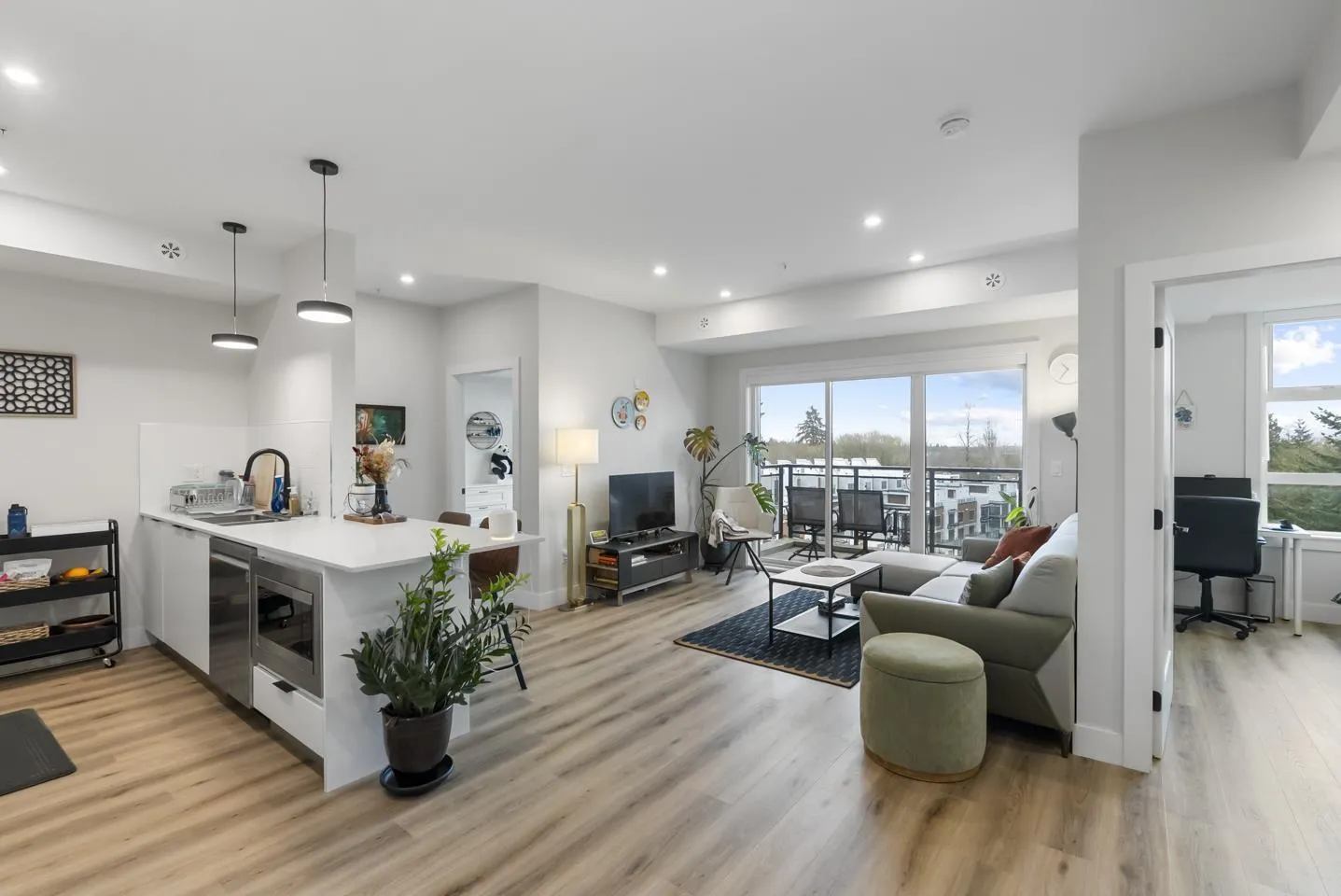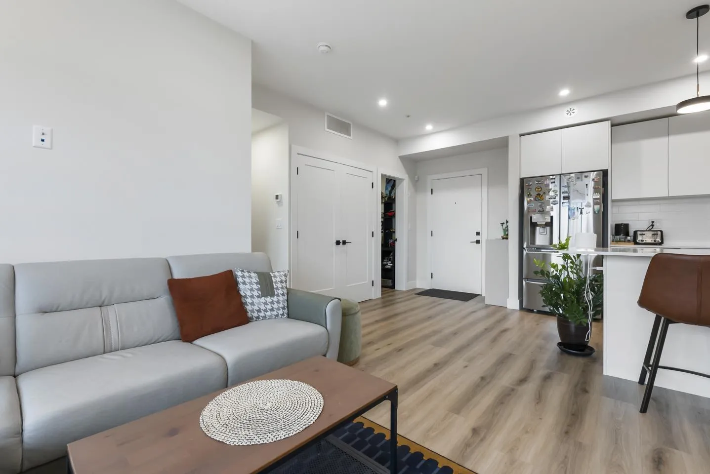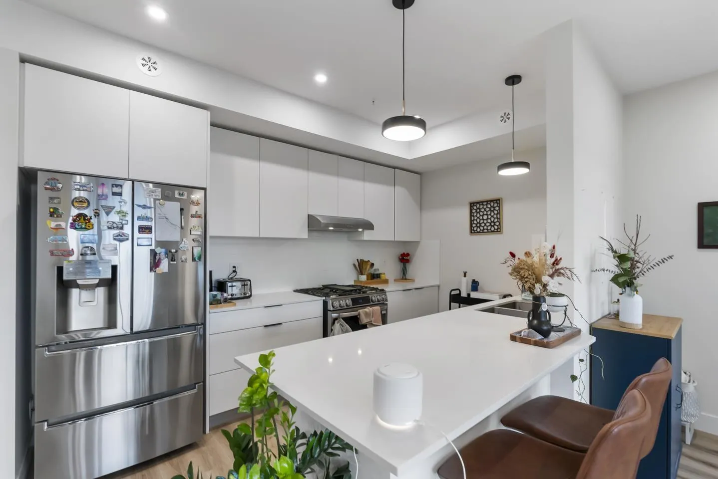 Step into this beautiful 2-year-old, 886 sqft 2-bed + den, 2-bath home in the SHYNE building! Designed for comfort, this spacious layout features upgraded with A/C, a natural gas range, and a balcony with a BBQ connection. Enjoy fantastic amenities like a fitness and yoga studio, a party lounge, and convenient ground-floor dining and shopping. This highly pet-friendly home includes