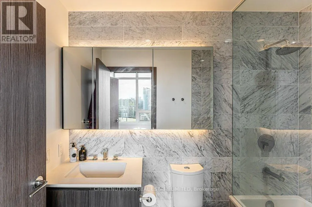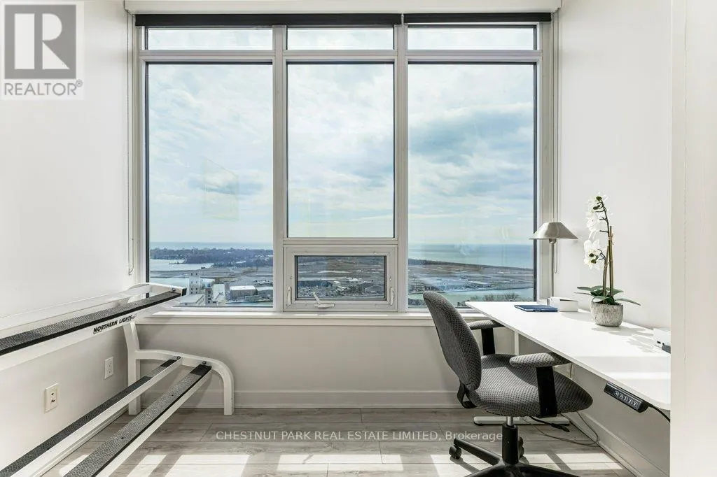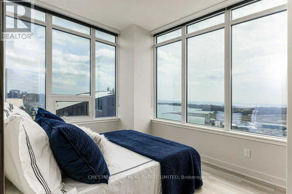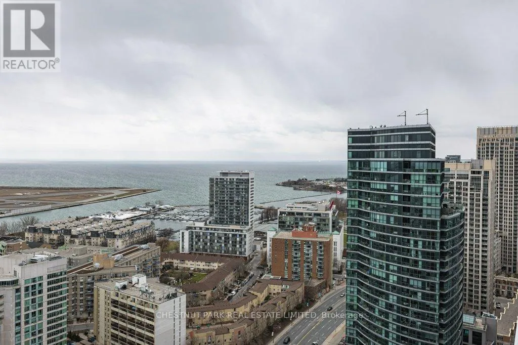 Outstanding unobstructed south, east and west views from the expansive wall-to-wall windows of this beautifully upgraded corner suite. Walk-out to an open balcony to enjoy the island and lake views. Enjoy tranquility in the sky, while living in the most vibrant part of the city! This suite is one of the premium units above the 31st floor that have 9′