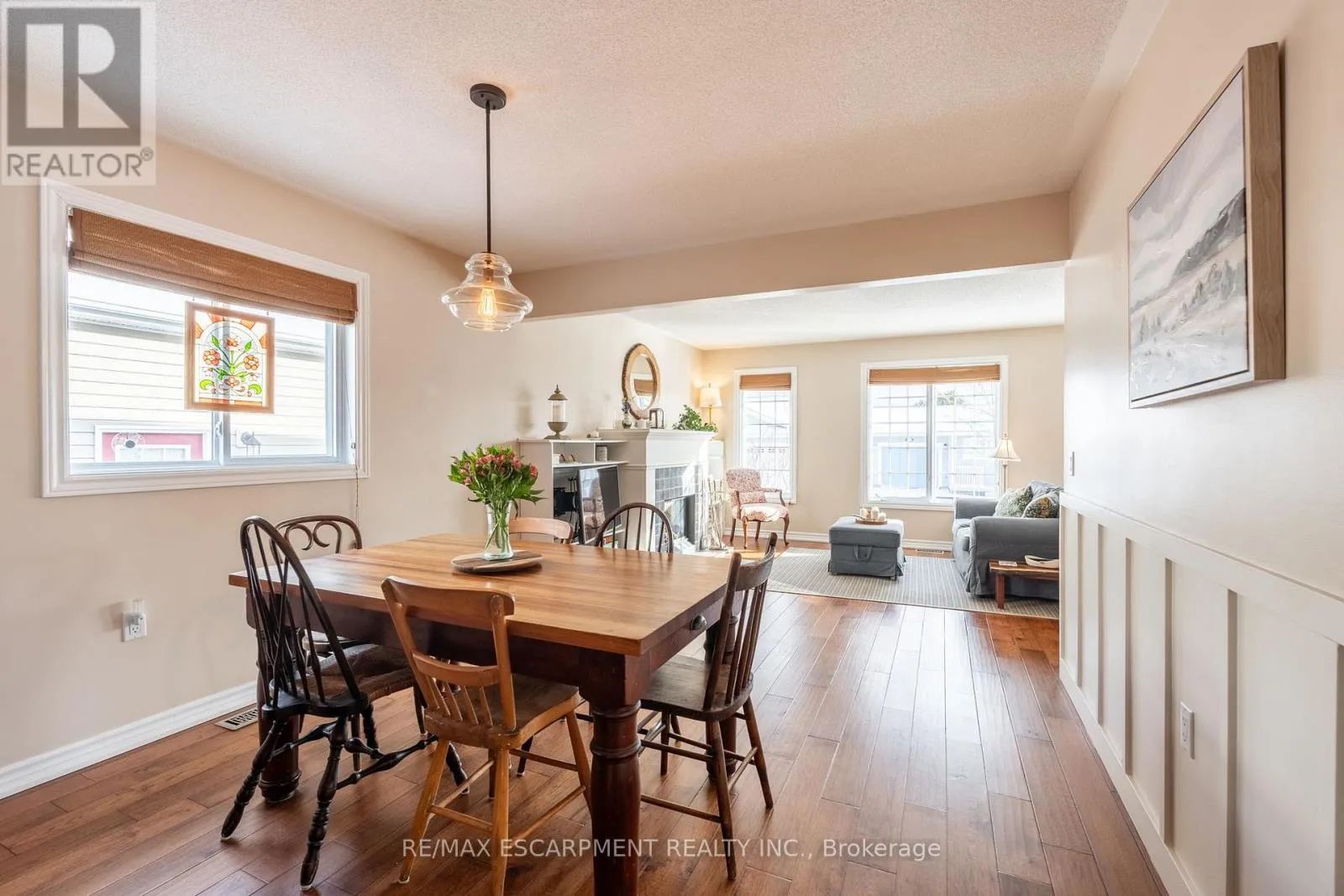 This lovely bungalow with 2+1 bedrooms and 2 bathrooms is 1339 square feet and is situated in the beautiful community of Antrim Glen; a Parkbridge Land Lease Community geared to adult lifestyle living. Enter this spotless home and be welcomed by a charming living room, featuring engineered hardwood floors and a cozy gas fireplace framed by elegant custom -built-ins. The