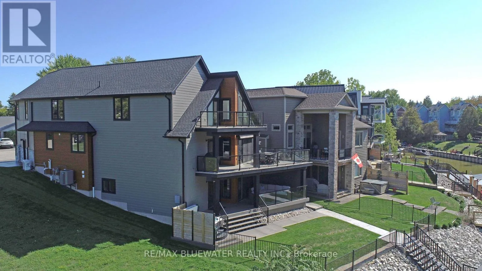 Modern upscale living with this executive riverfront home in the heart of Grand Bend that includes 47.5 feet of private boat docking in the Ausable River. This home checks all the boxes with a 4,044 sqft design featuring open concept living space flowing with natural light and river views! Outdoor entertainment area over 3 separate patio levels and a fenced