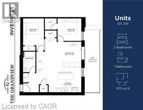 Public Remarks: Experience refined living at The Grandview, Caledonia’s newest upscale residence. The Inverness model features 975 square feet of thoughtfully designed space, including a private balcony with river views. This two-bedroom unit offers premium finishes such as a custom Winger kitchen with quartz countertops and backsplash, quartz surfaces in both the tub and shower, six high-quality appliances, premium window