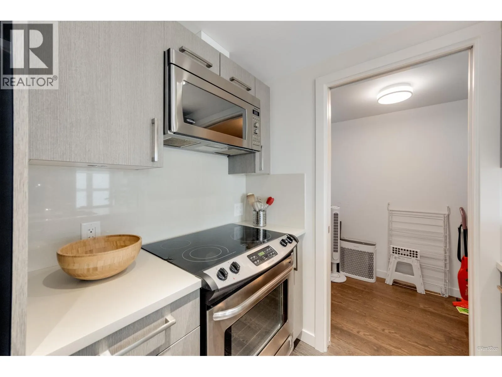 Welcome to the Raymur @ Strathcona Village! This 1 bedroom and den faces East so you can enjoy the morning sun and city views from balcony. The layout is efficient and the kitchen is modern with sleek cabinetry, S/S appliances and quartz countertops. The building amenities boast a gym, meeting rooms, landscaped rooftop terrace with garden, play area, BBQ right