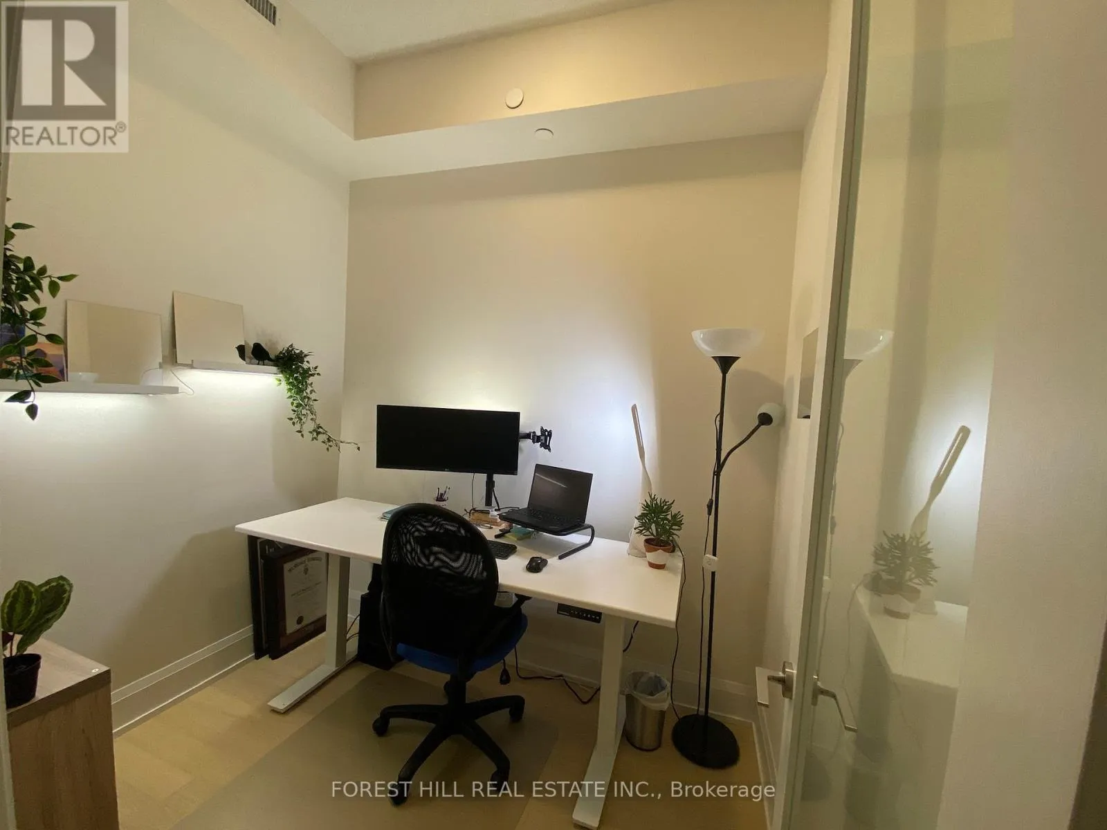 Welcome to The Riverside Condos. Located in the heart of downtown Markham, this building offers the most desirable location, balancing convenience and privacy. Designed for living, this 600sqft unit has no wasted space. Private den with a door makes for an excellent home office. Open concept kitchen comes with built-in high-end appliances and custom cabinets. Bedroom with a large closet